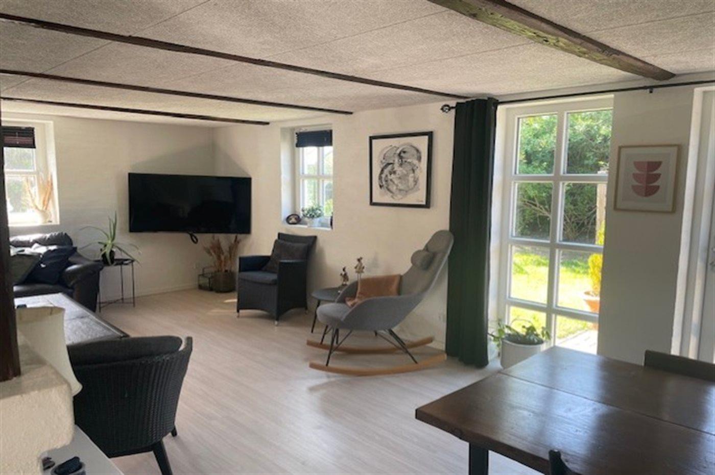 Bemærk: Forbrug (varme, el og vand) er inkluderet i lejen. Den anden del af huset er fast beboet.
