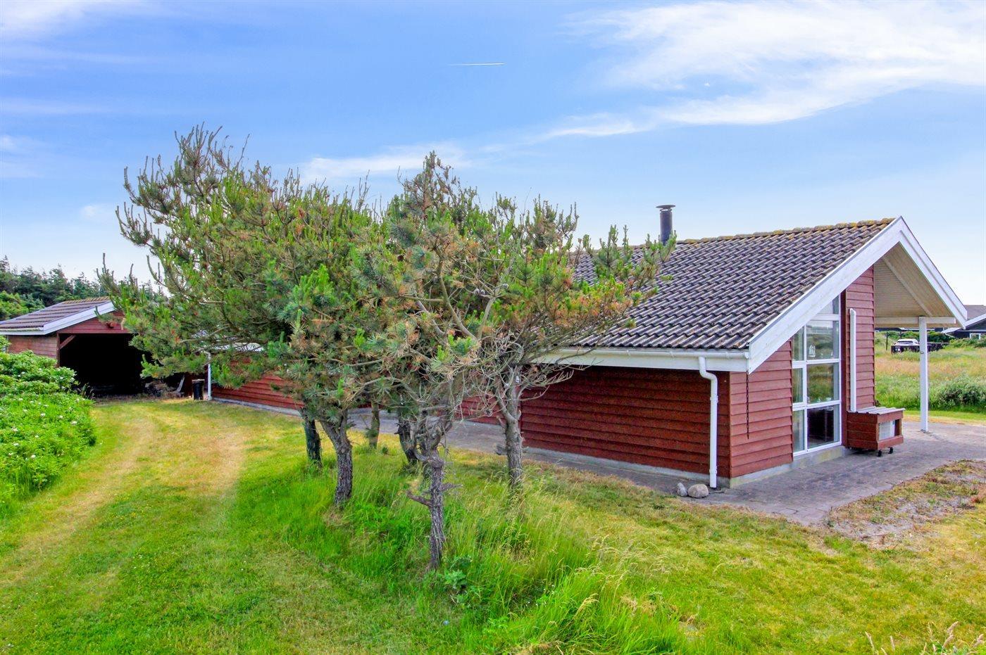 Ferieboligen er beliggende på en 2500 m² stor naturgrund. Der er 250 m til havet. Nærmeste forretning er beliggende i en afstand af 800 m. Til ferieboligen hører åbent terrasseareal. Grill til rådighed. Parkering ved ferieboligen.