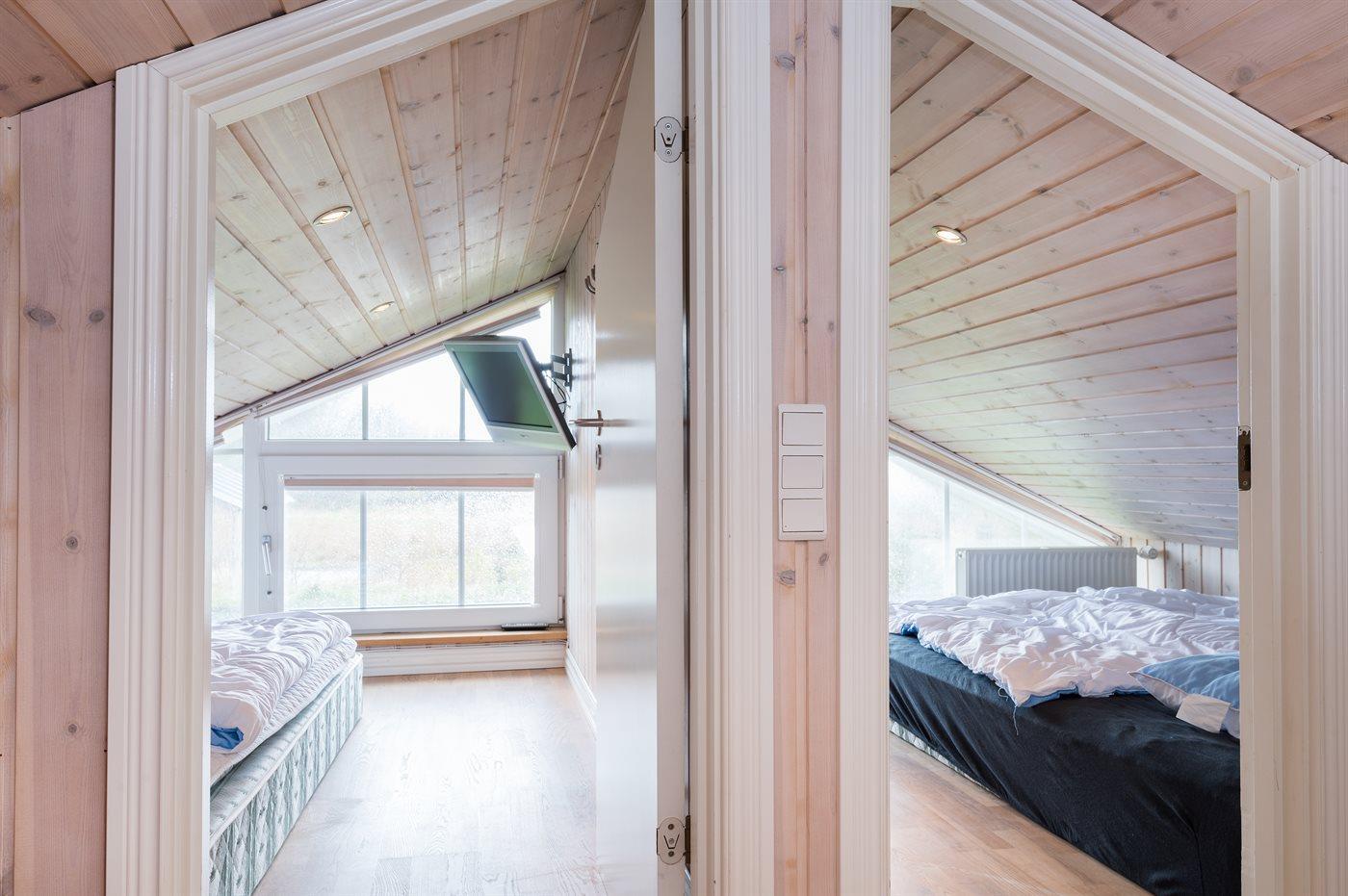 Ovenover de to soverum med dobbeltsenge er der indrettet en hems, hvortil der er adgang via en rigtig trappe.