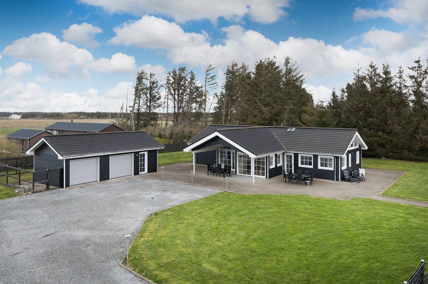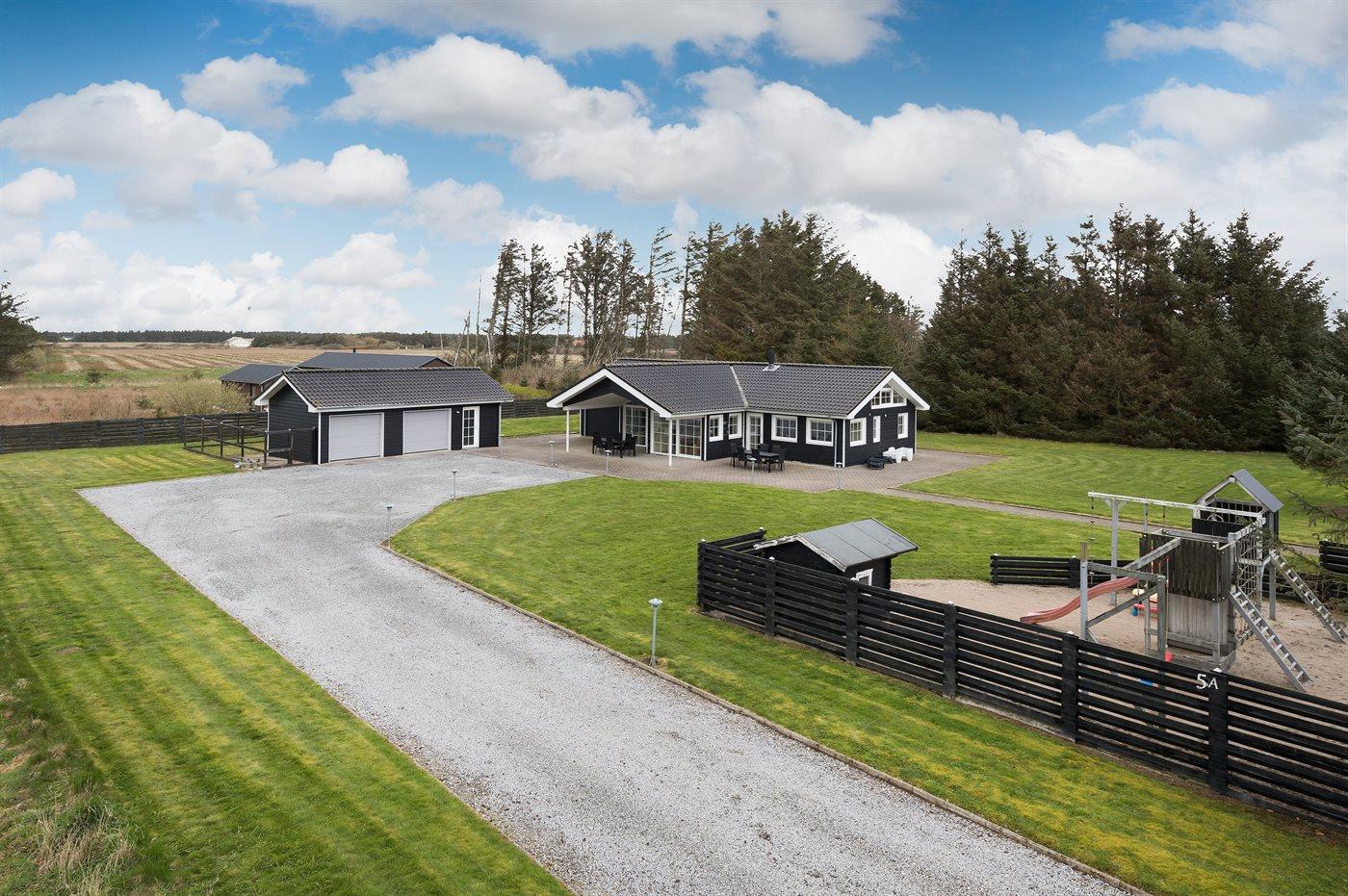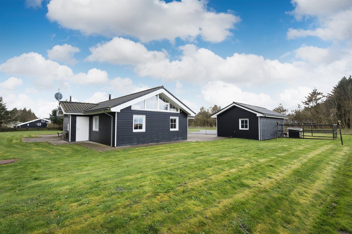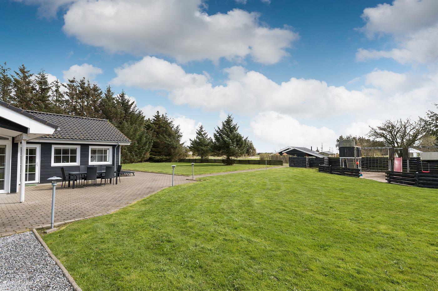 Ferieboligen er beliggende på en 2903 m² stor naturgrund. Der er 850 m til havet. Nærmeste forretning er beliggende i en afstand af 500 m. Til ferieboligen hører åbent terrasseareal. Desuden er der overdækket terrasse. Gynge. Legetårn. Rutchebane. Der er garage til rådighed. Parkering ved ferieboligen.