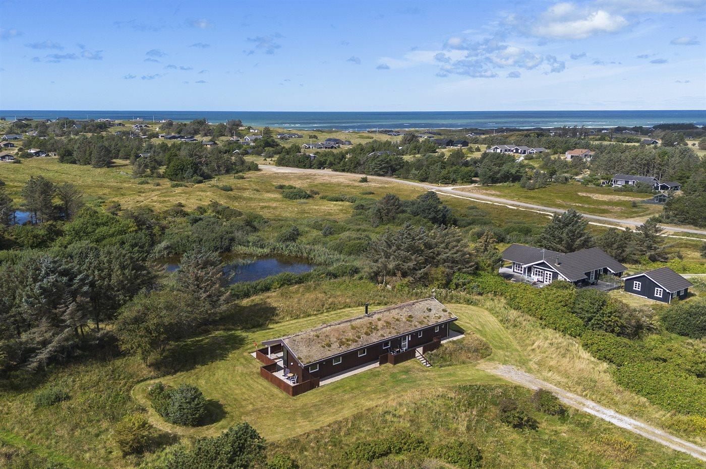 Her kan du gå tur i skoven, omkring søen eller fortsætte hele vejen ned til Vesterhavet. Efter en god, lang dag i det fri kan du komme hjem og nyde en kop kaffe foran brændeovnen eller spille et spil. Til huset hører flere terrasser, både med morgensol og aftensol. På de mindre gode dage er der fortsat mulighed for at sidde ude, grille og nyde aftensmaden, da der også findes en stor, overdækket terrasse mod vest.