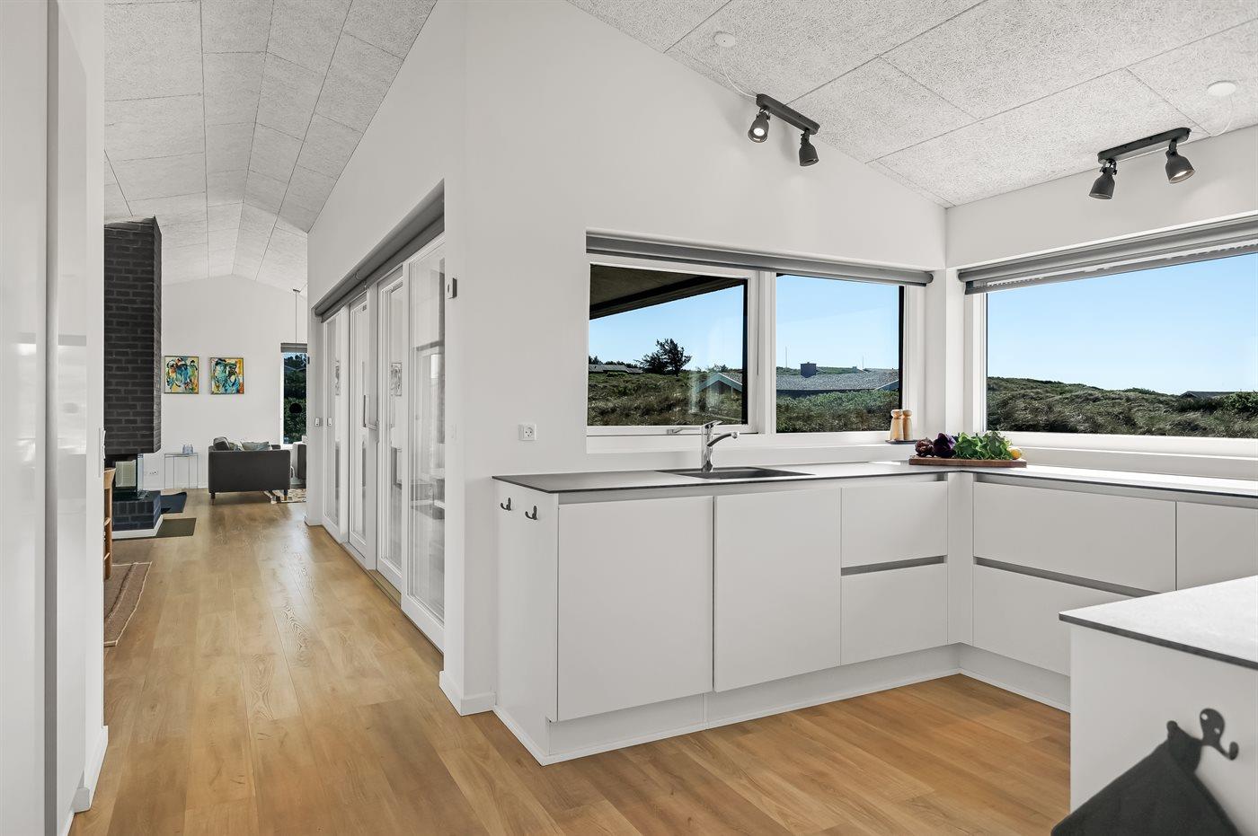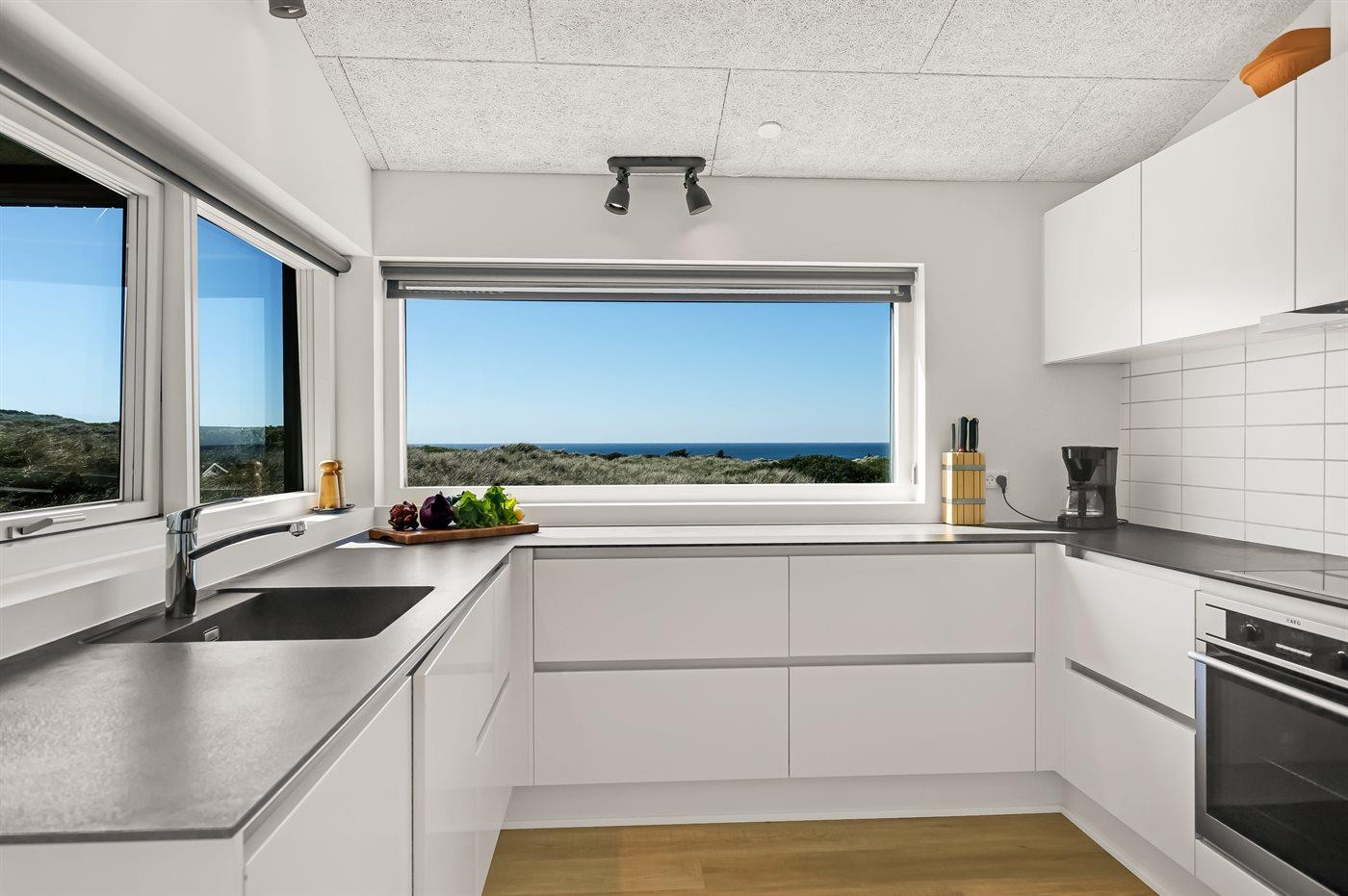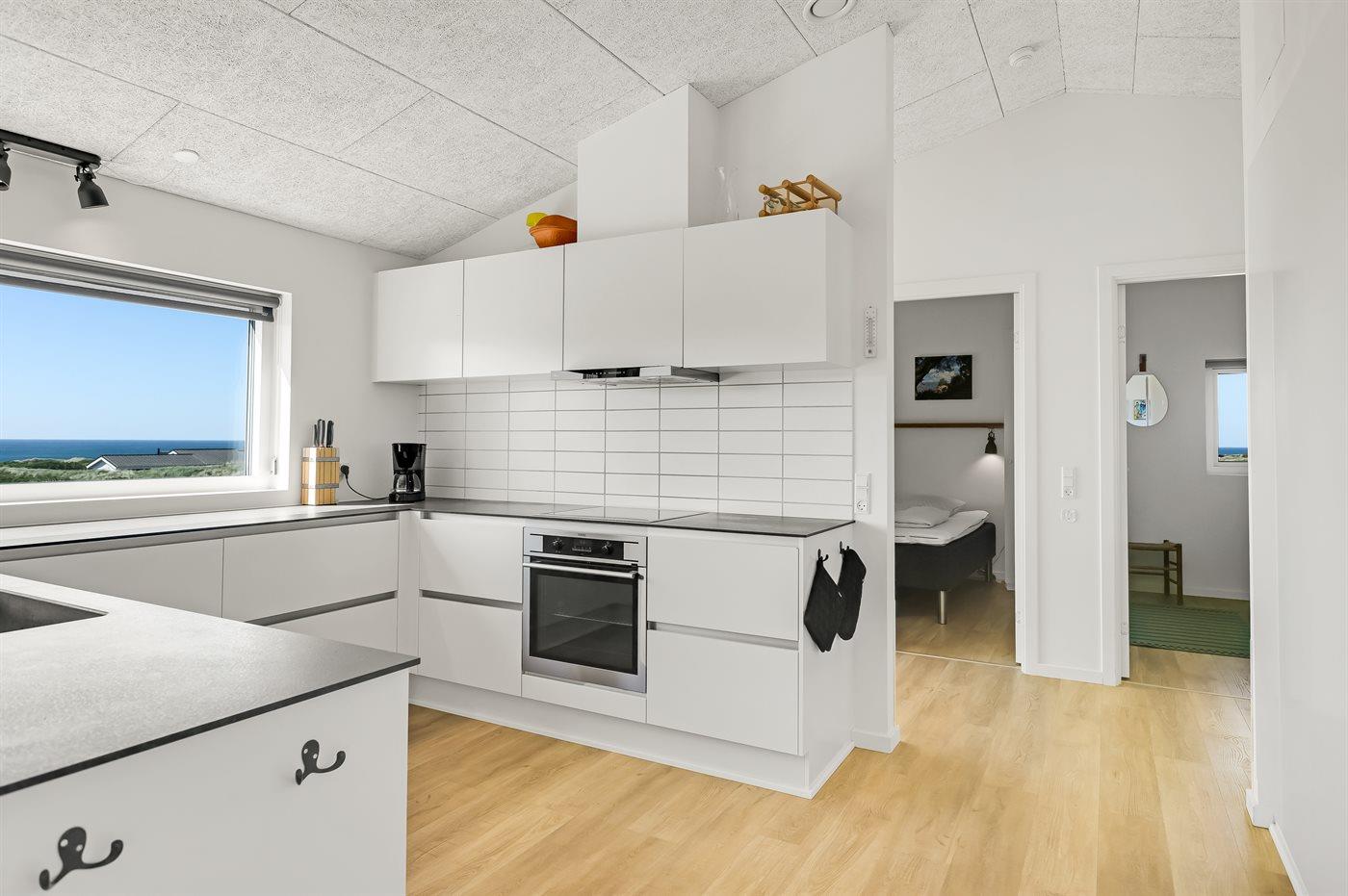 Køkkenet er udstyret med 1 køleskab. Der er 4 keramiske kogeplader, varmluftovn, mikrobølgeovn samt opvaskemaskine.