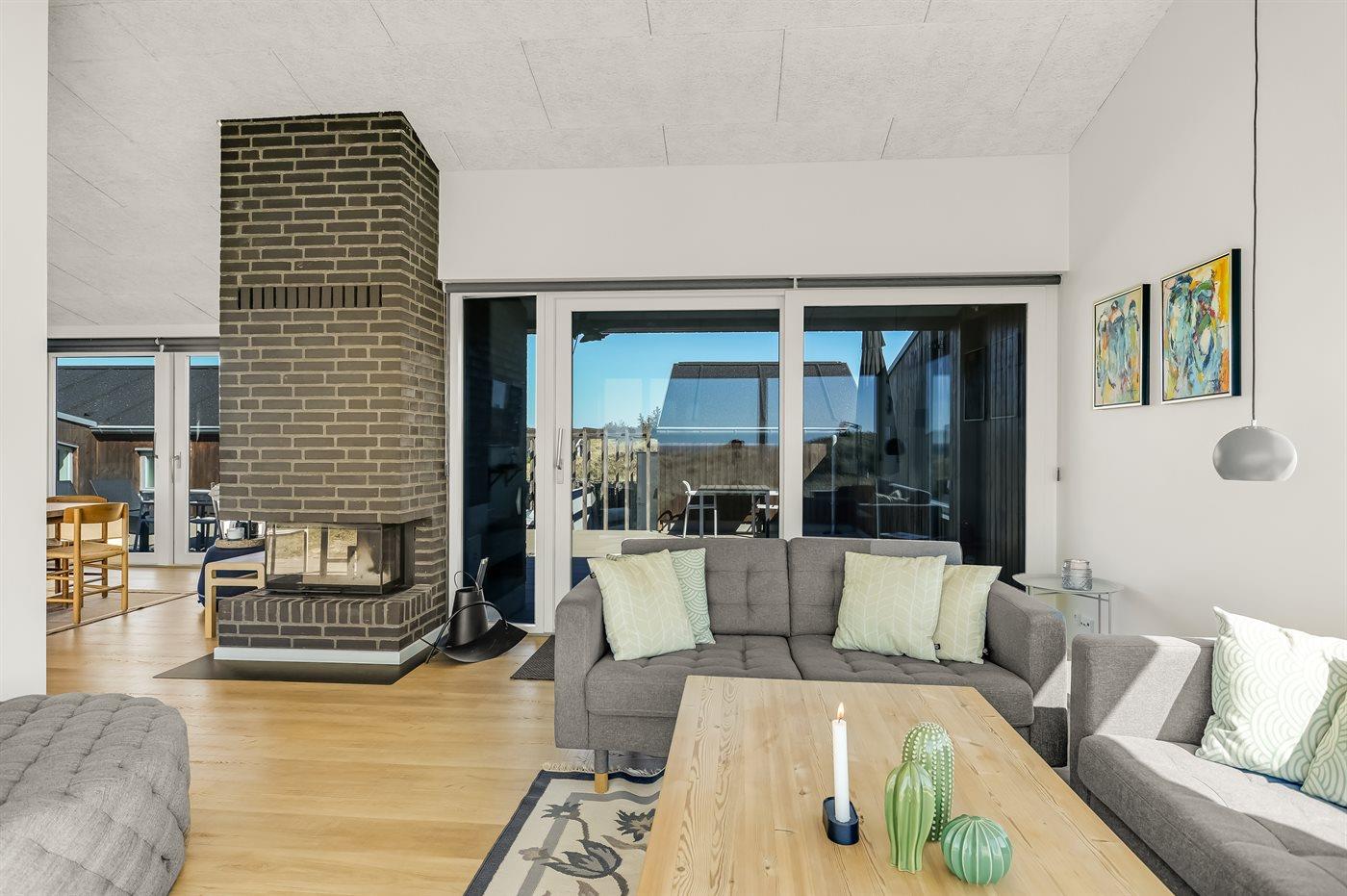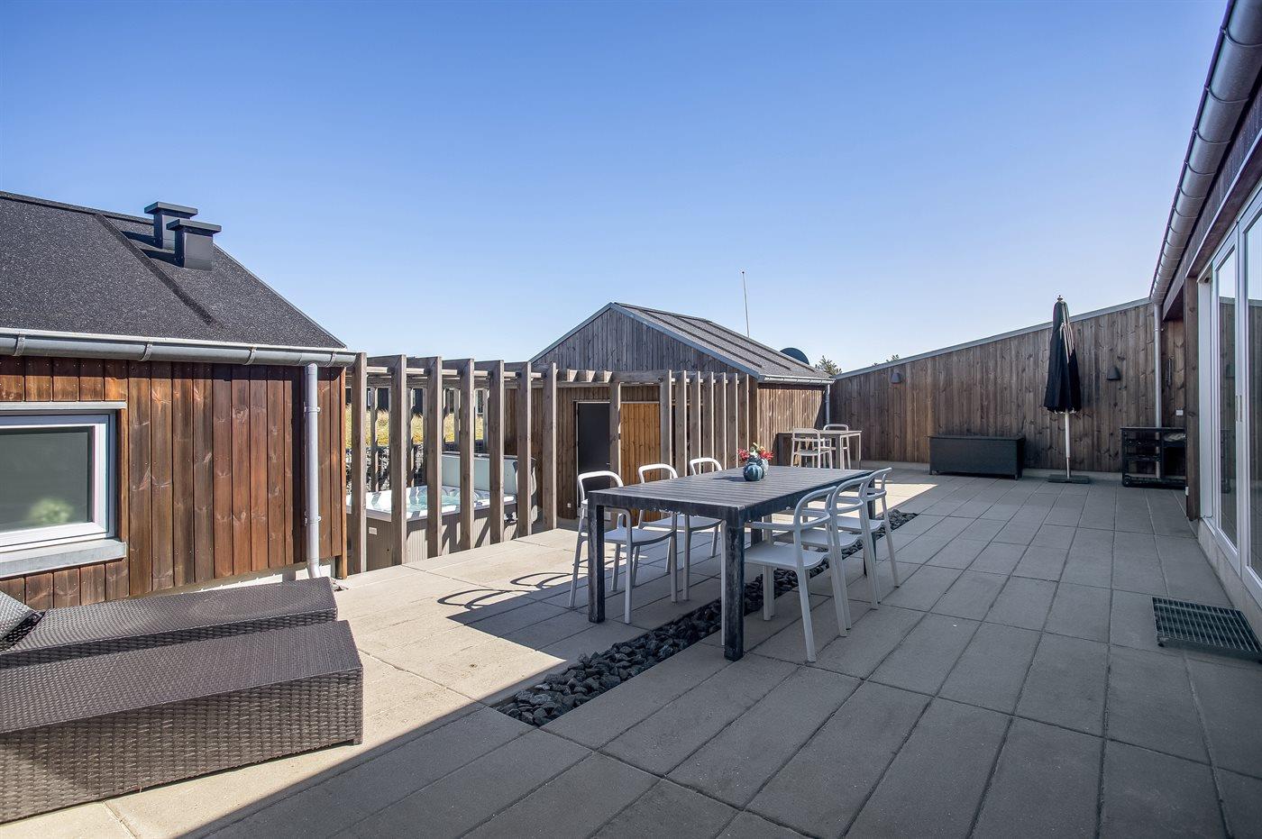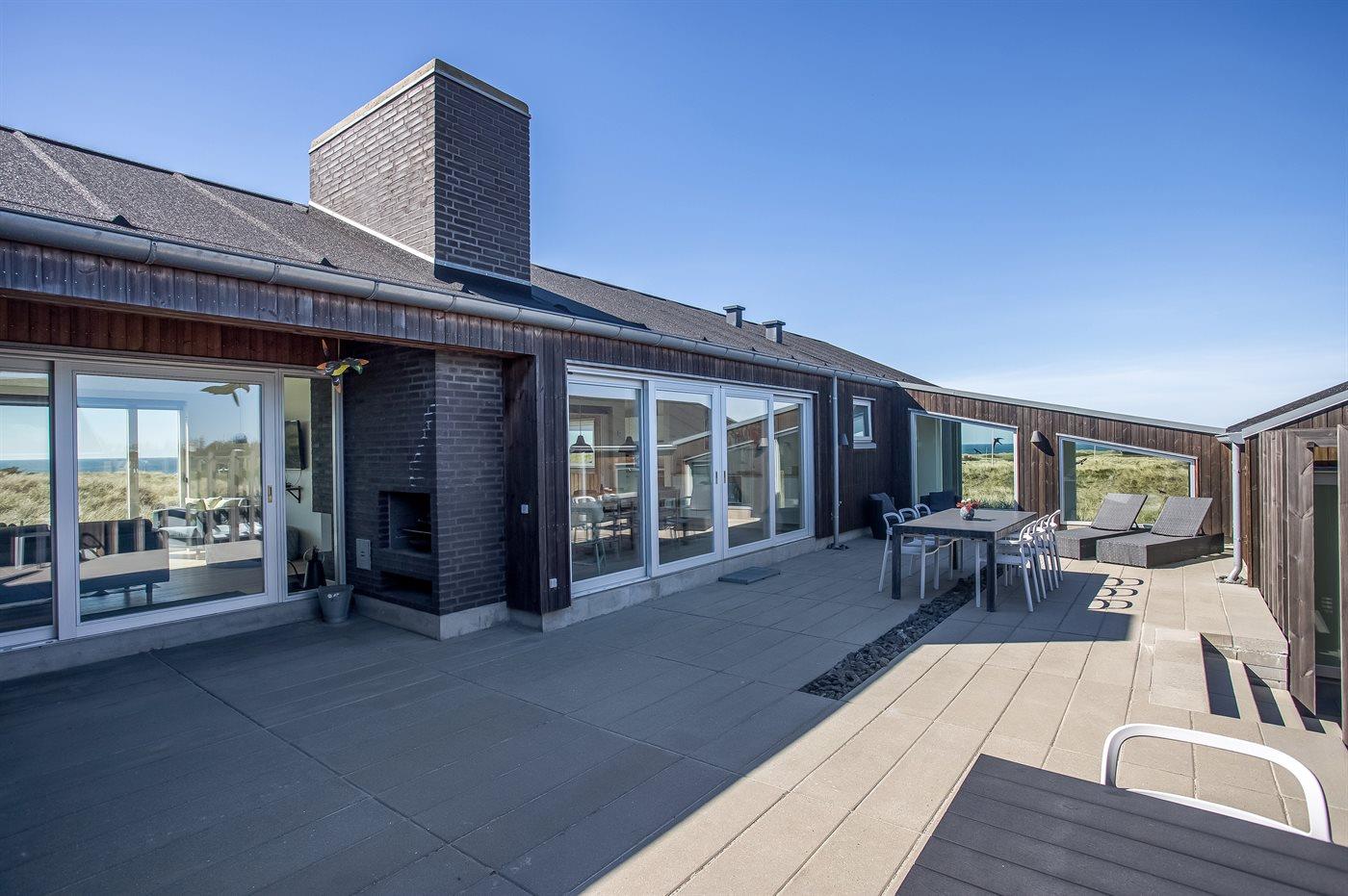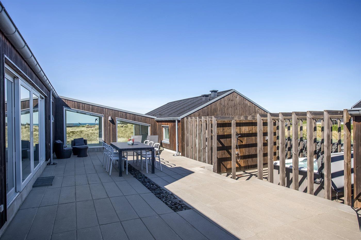 Ferieboligen er beliggende på en 2500 m² stor naturgrund. Der er 450 m til havet. Nærmeste forretning er beliggende i en afstand af 3000 m. Til ferieboligen hører åbent terrasseareal. Desuden er der overdækket terrasse. Der er redskabsrum. Udendørs bruser. Grill til rådighed. Der er installeret stik til opladning af elbil. Parkering ved ferieboligen.