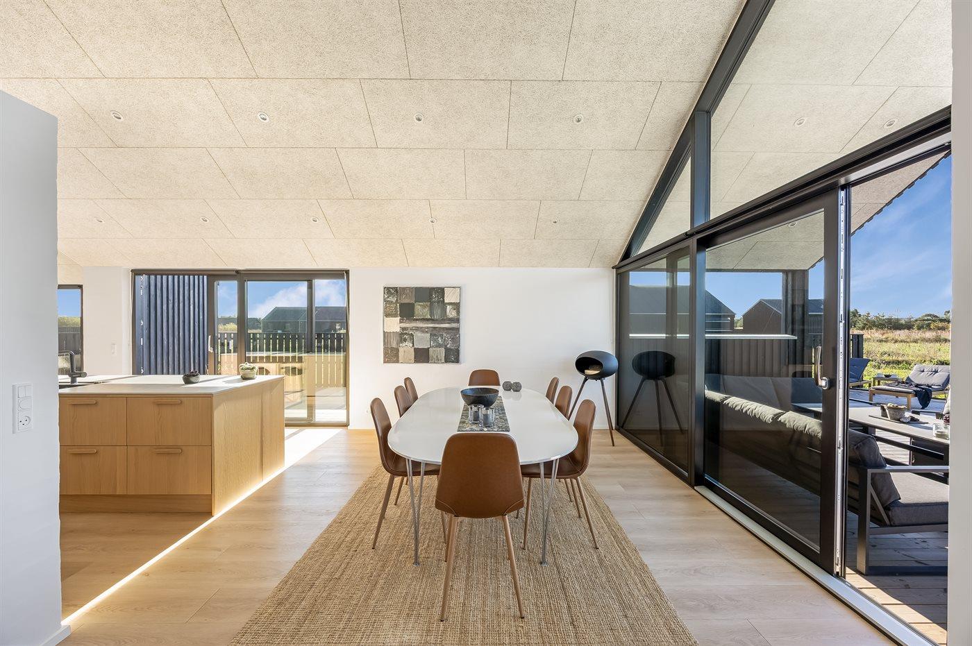 Sommerhuset egner sig til 10 personer. Ferieboligen er på 175 m² og er bygget i 2024. Det er tilladt at medbringe 2 husdyr. Ferieboligen er udstyret med energibesparende luft til vand varmepumpe. Der er solvarme. Hele ferieboligen har gulvvarme. Ferieboligen har vaskemaskine. Tørretumbler. Frysekapacitet på 218 liter.