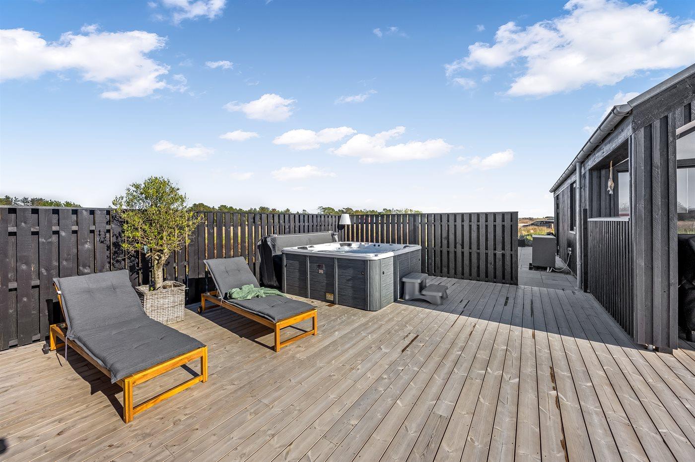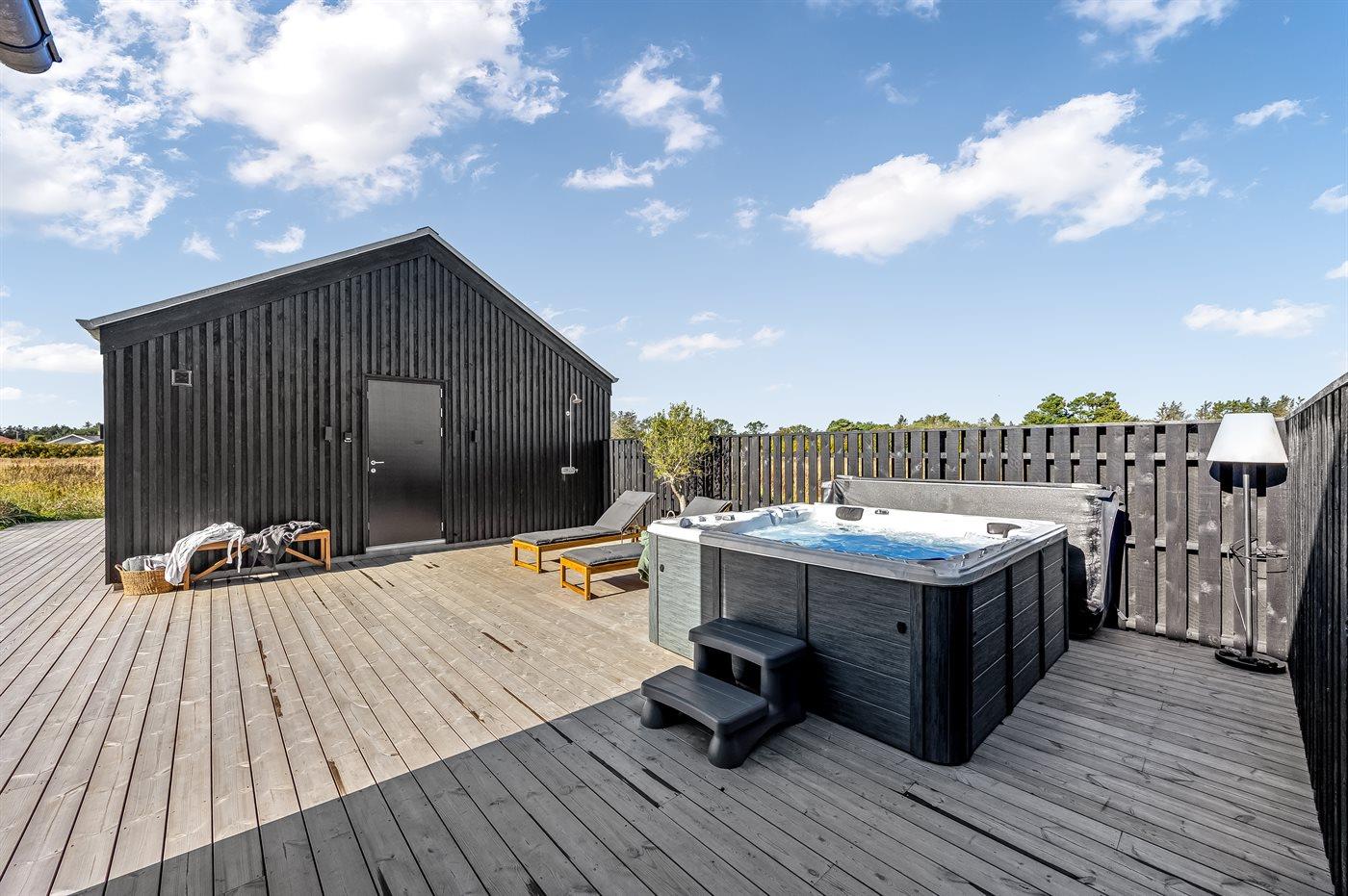 Der er mulighed for afslapning i indendørs spa til 2 personer. Der er mulighed for afslapning i udendørs standvandsspa til 5 personer.