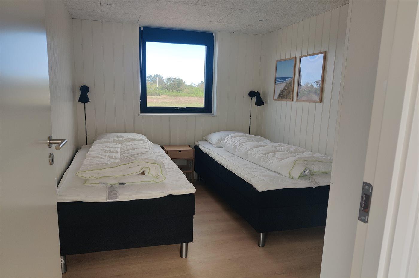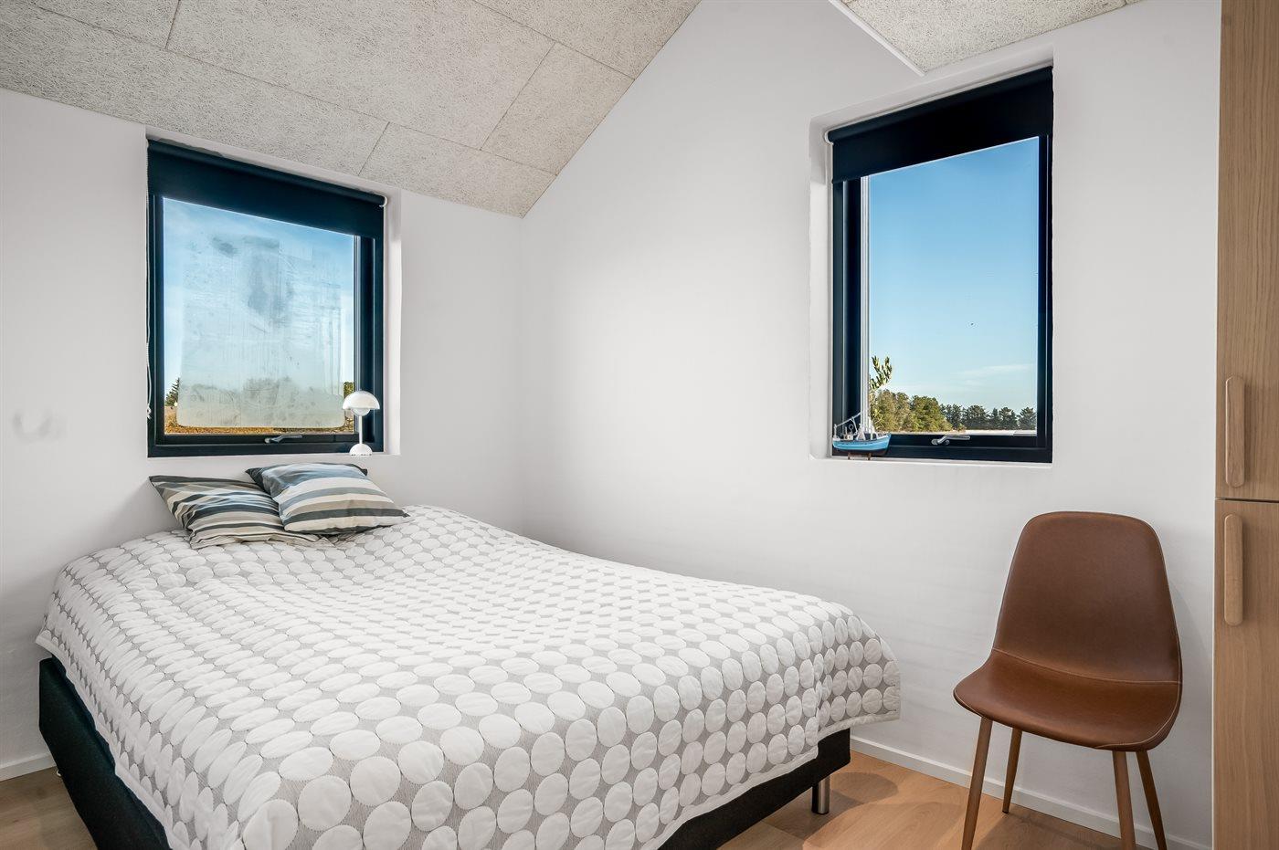 Der er i alt 4 soveværelser. Sovepladserne fordeler sig på: 4 sovepladser i dobbeltsenge. 6 sovepladser i enkeltsenge. 2 af disse sovepladser befinder sig på husets hems og andre 2 af disse sovepladser befinder sig i anneks.
