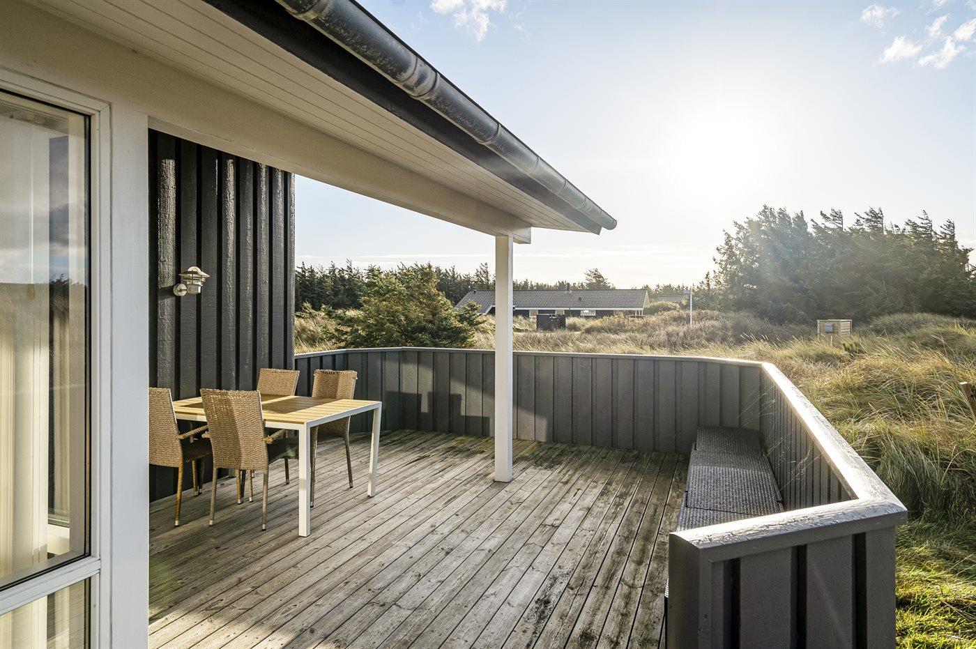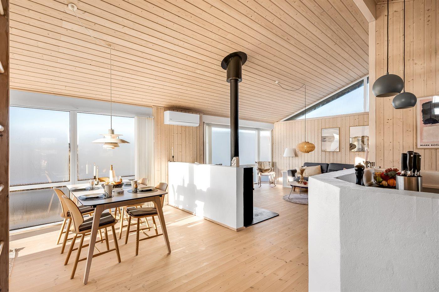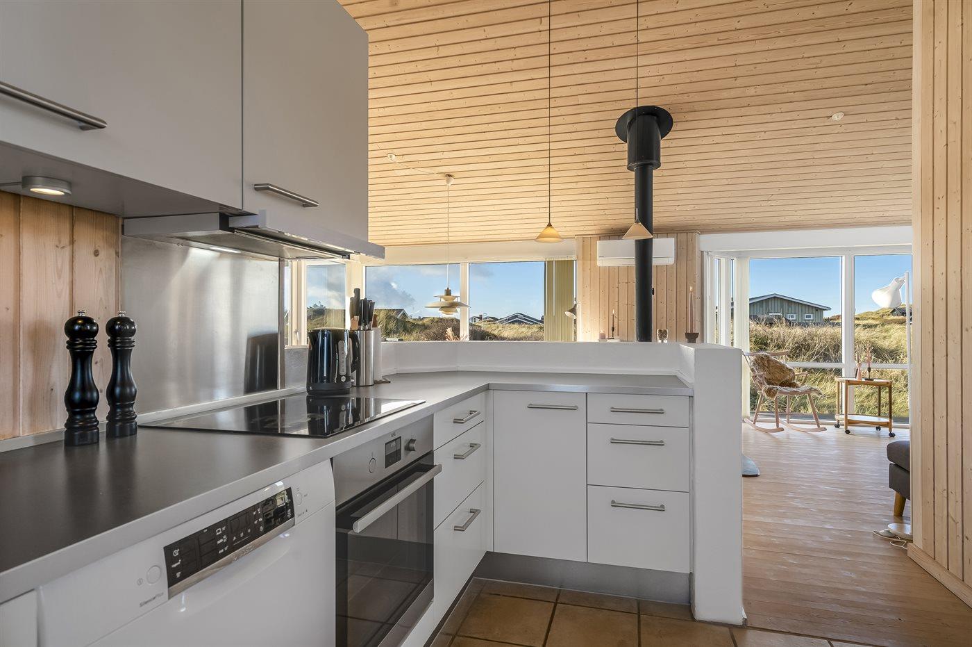 Huset byder på alt, hvad du behøver for afslapning og kvalitetstid tæt på stranden. Ønsker du et nyere komfortabelt sommerhus, der ligger i den fantastiske natur tæt på en af Danmarks bedste badestrande, så er dette rette tilflugtssted. Huset danner den perfekte ramme for en dejlig, hyggelig og afslappende ferie. Ønsker du at nyde roen med en god bog, så er der rig mulighed herfor både inde og ude. Indenfor i den lyse stue med hyggelig brændeovn, og ude på den dejlige terrasse med udsigt til natur, klitter samt den åbne himmel.