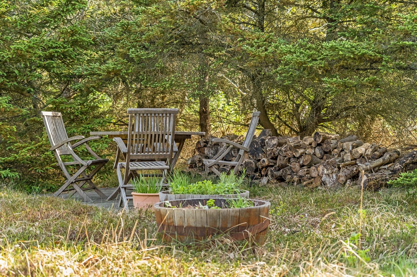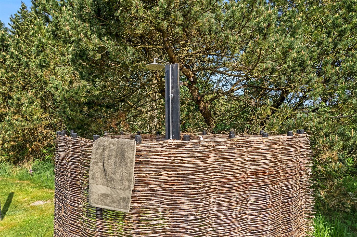 Ferieboligen er beliggende på en 2422 m² stor havegrund. Der er 600 m til havet. Nærmeste forretning er beliggende i en afstand af 1300 m. Til ferieboligen hører åbent terrasseareal. Desuden er der overdækket terrasse. Der er redskabsrum. Sandkasse. Bålsted. Udendørs bruser. Grill til rådighed. Parkering ved ferieboligen.