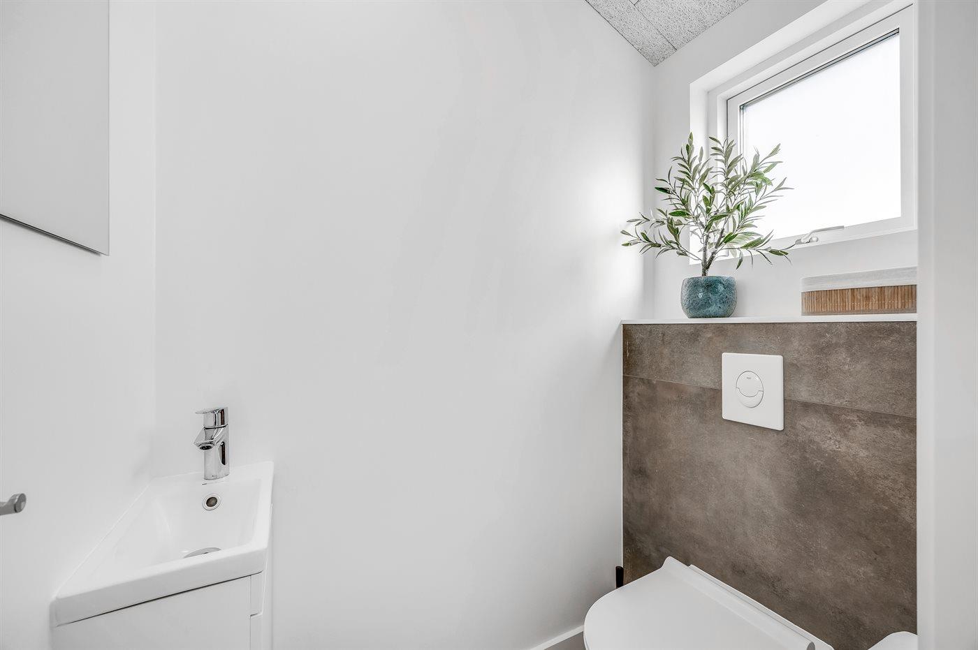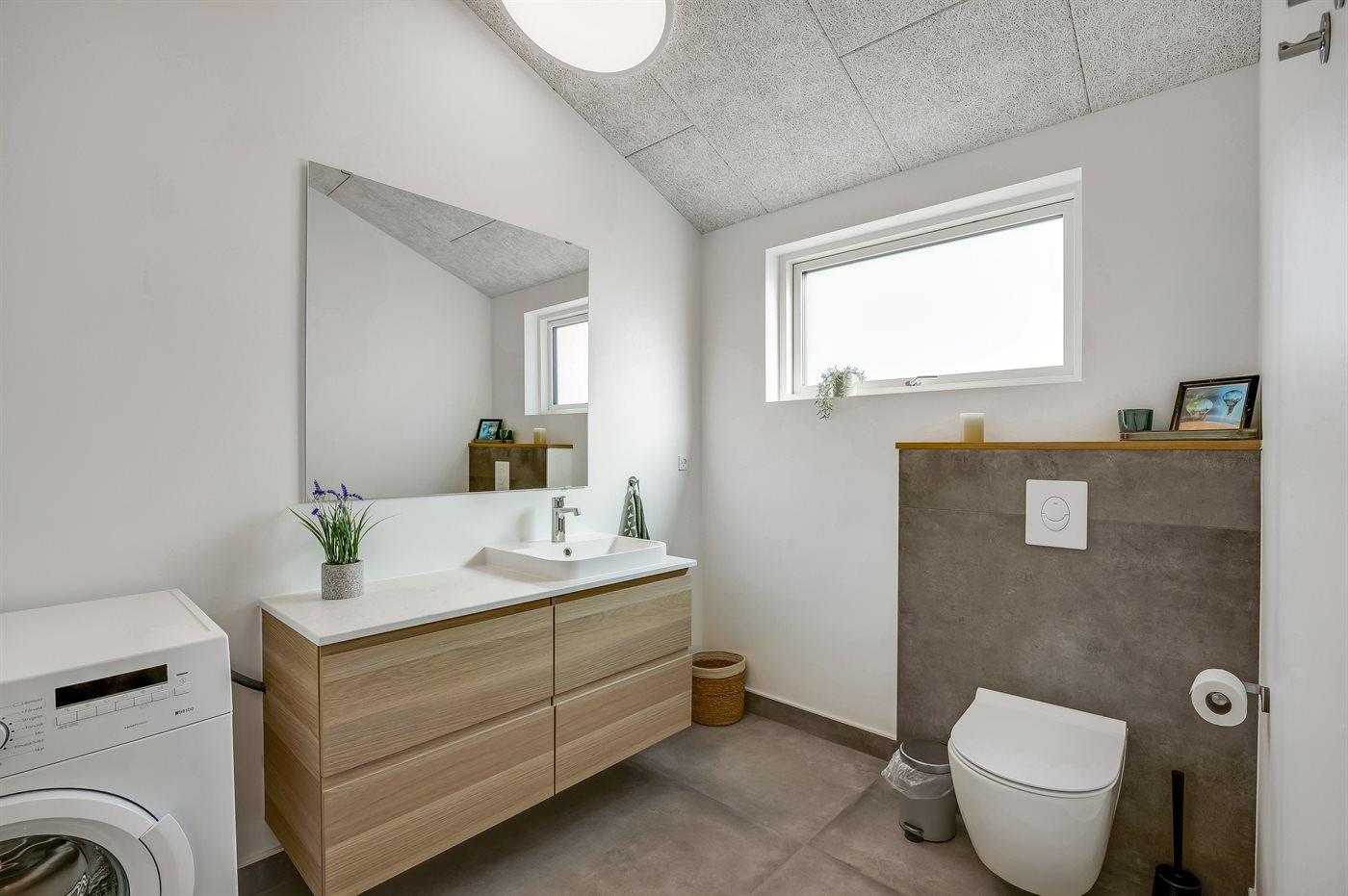 Der er 1 badeværelse med bruseniche og 2 toiletter, heraf 1 gæstetoilet. Der er gulvvarme på 1 badeværelse. Der er gulvvarme på gæstetoilettet.