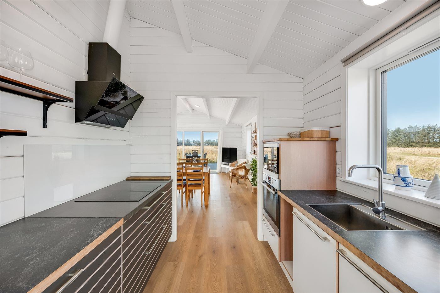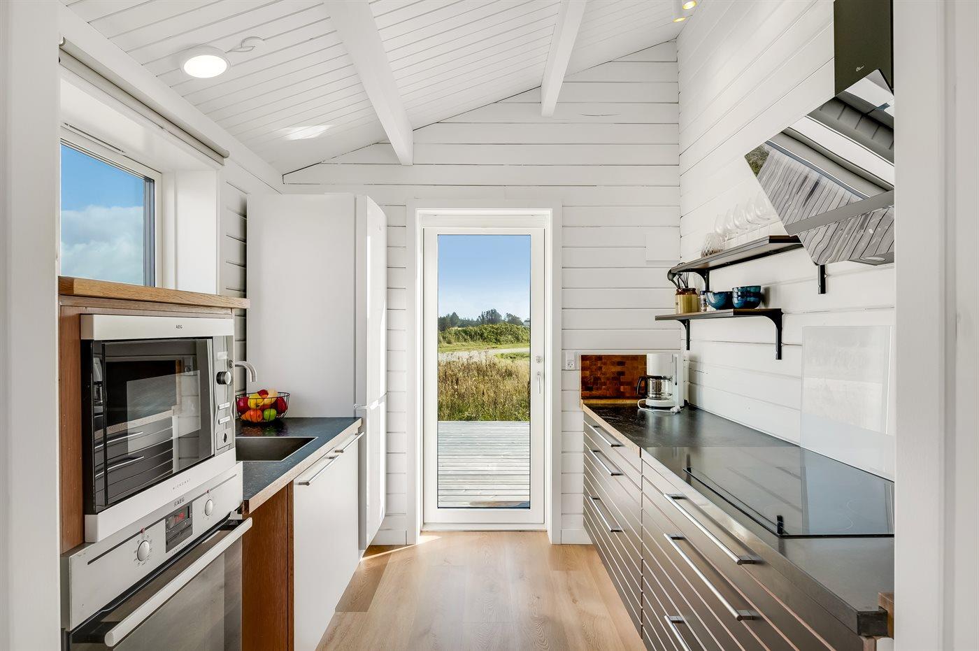 Køkkenet er udstyret med 1 køleskab. Der er 4 induktionskogeplader, varmluftovn, mikrobølgeovn samt opvaskemaskine.