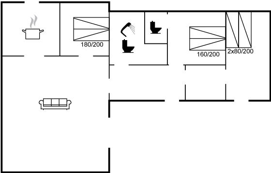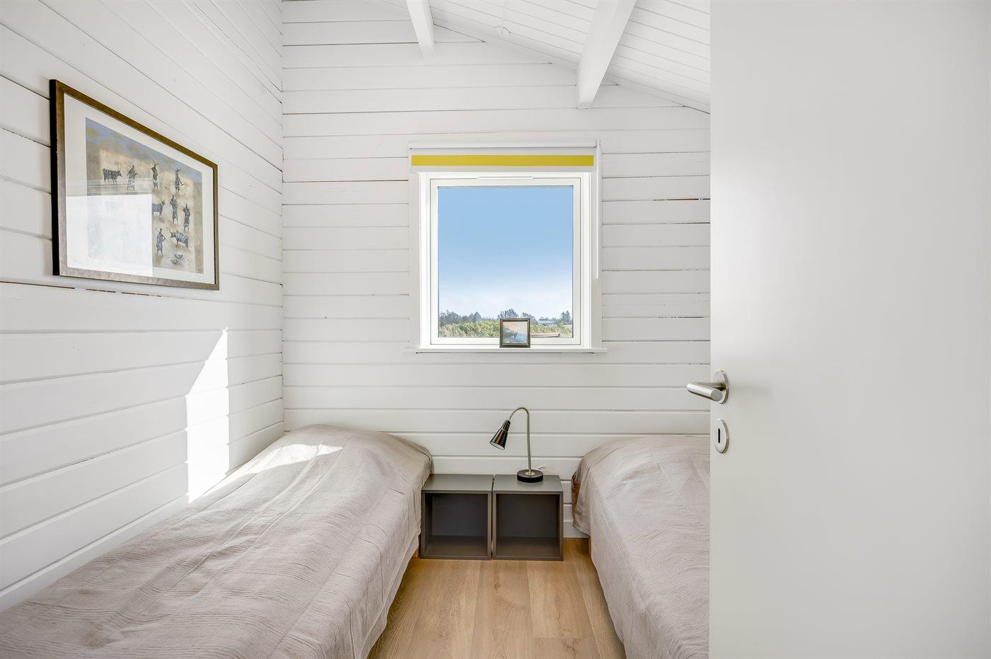 Der er i alt 3 soveværelser. Sovepladserne fordeler sig på: 4 sovepladser i dobbeltsenge. 2 sovepladser i enkeltsenge.