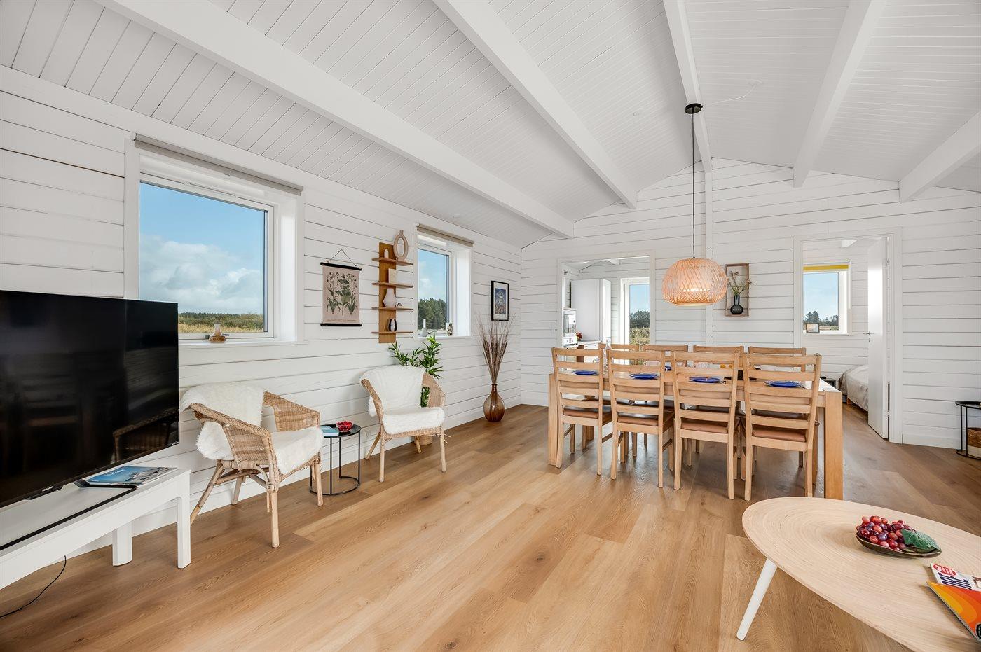Sommerhuset egner sig til 6 personer. Ferieboligen er på 91 m² og er bygget i 2024. Det er tilladt at medbringe 4 husdyr. Ferieboligen er udstyret med 1 energivenlig luft til vand varmepumpe. Hele ferieboligen har gulvvarme. Ferieboligen har vaskemaskine. Frysekapacitet på 45 liter.