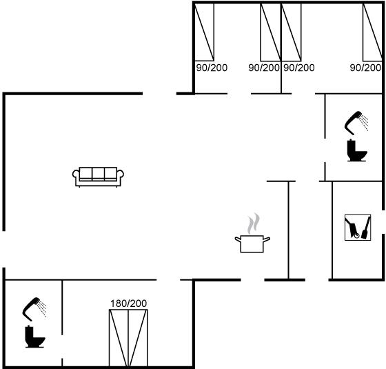 Der er i alt 3 soveværelser. Sovepladserne fordeler sig på: 2 sovepladser i dobbeltseng. 4 sovepladser i enkeltsenge.