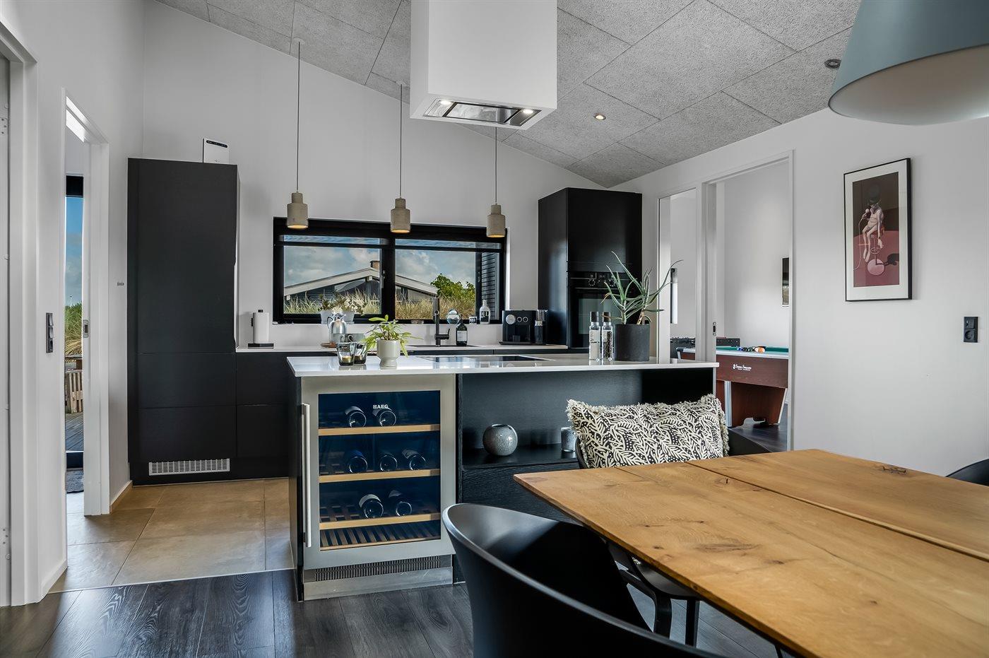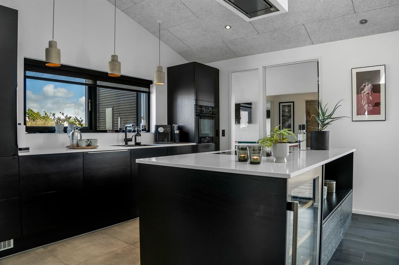 Køkkenet er udstyret med 1 køleskab. Der er 4 induktionskogeplader, varmluftovn samt opvaskemaskine Der er gulvvarme i køkkenet.