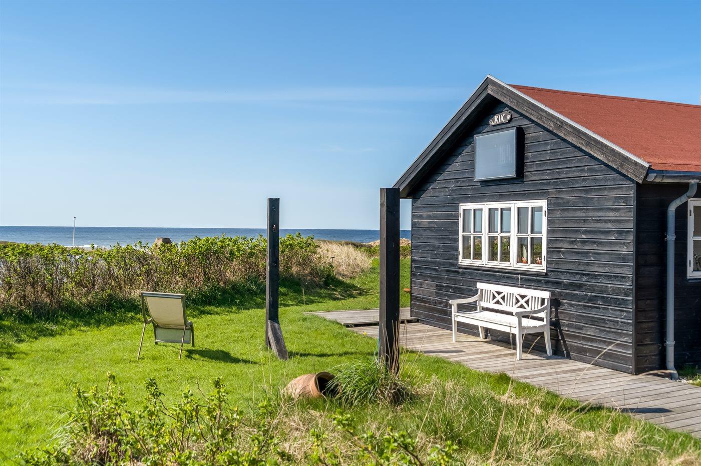 Ferieboligen er beliggende på en 1680 m² stor naturgrund. Der er 100 m til havet. Nærmeste forretning er beliggende i en afstand af 800 m. Til ferieboligen hører åbent terrasseareal. Desuden er der overdækket terrasse. Der er redskabsrum. Bålsted. Udendørs bruser. Grill til rådighed. Parkering ved ferieboligen.