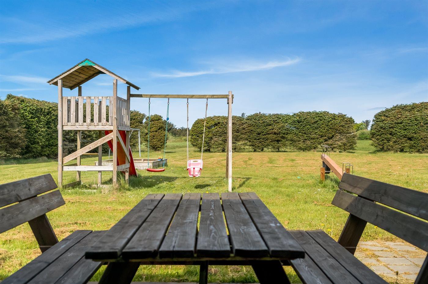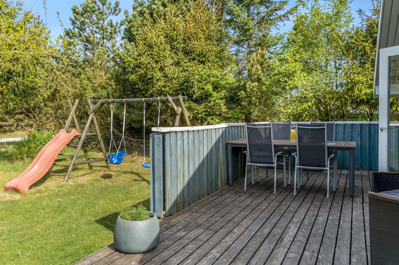 Ferieboligen er beliggende på en 1271 m² stor naturgrund. Der er 1200 m til havet. Nærmeste forretning er beliggende i en afstand af 500 m. Til ferieboligen hører åbent terrasseareal. Der er redskabsrum. Gynge. Sandkasse. Legetårn. Rutchebane. Grill til rådighed. Parkering ved ferieboligen.