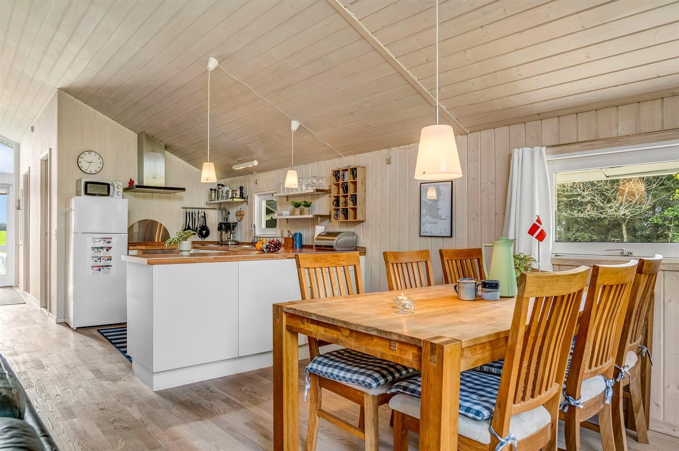 Køkkenet er udstyret med 1 køleskab. Der er 4 keramiske kogeplader, varmluftovn, mikrobølgeovn samt opvaskemaskine.
