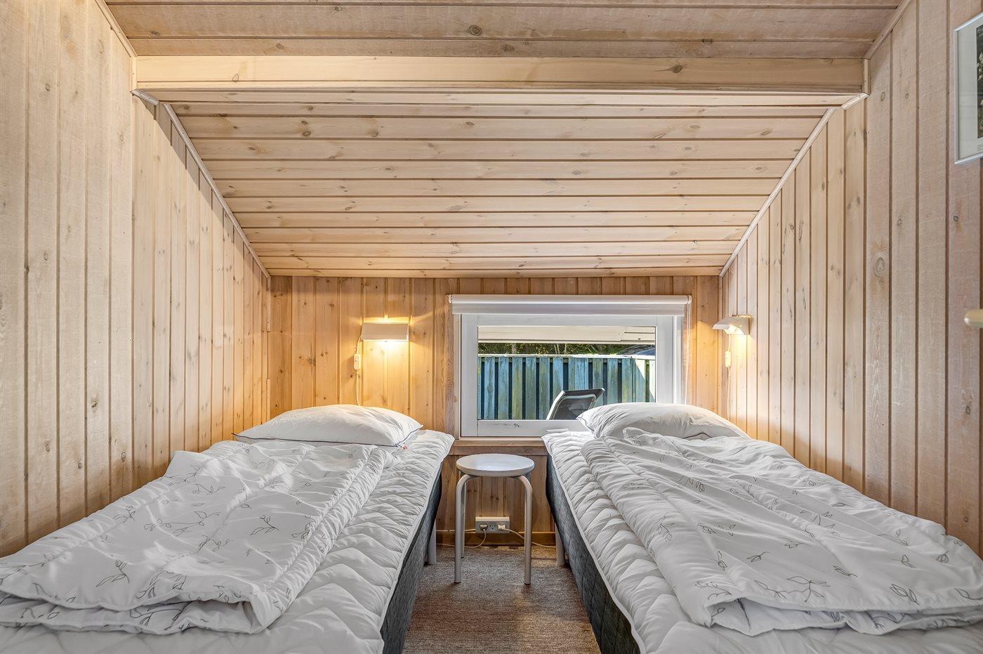 Der er i alt 3 soveværelser. Sovepladserne fordeler sig på: 2 sovepladser i dobbeltseng. 2 sovepladser i enkeltsenge. 2 sovepladser i køjeseng. Derudover er der 1 stk. barneseng.