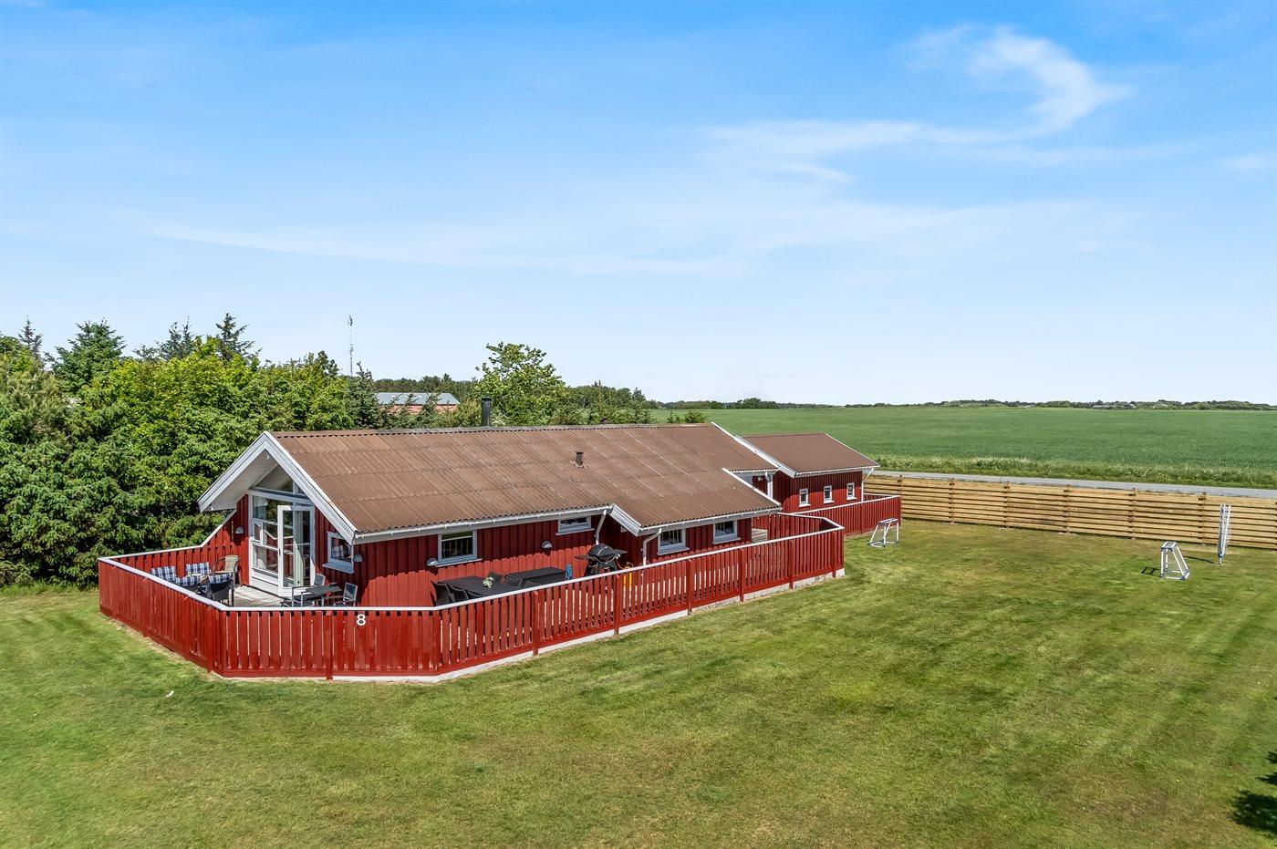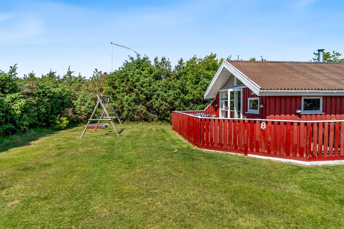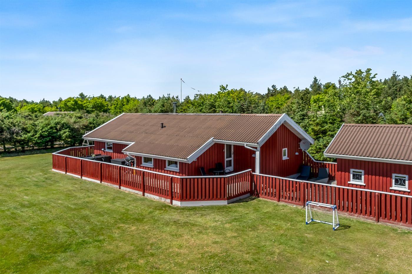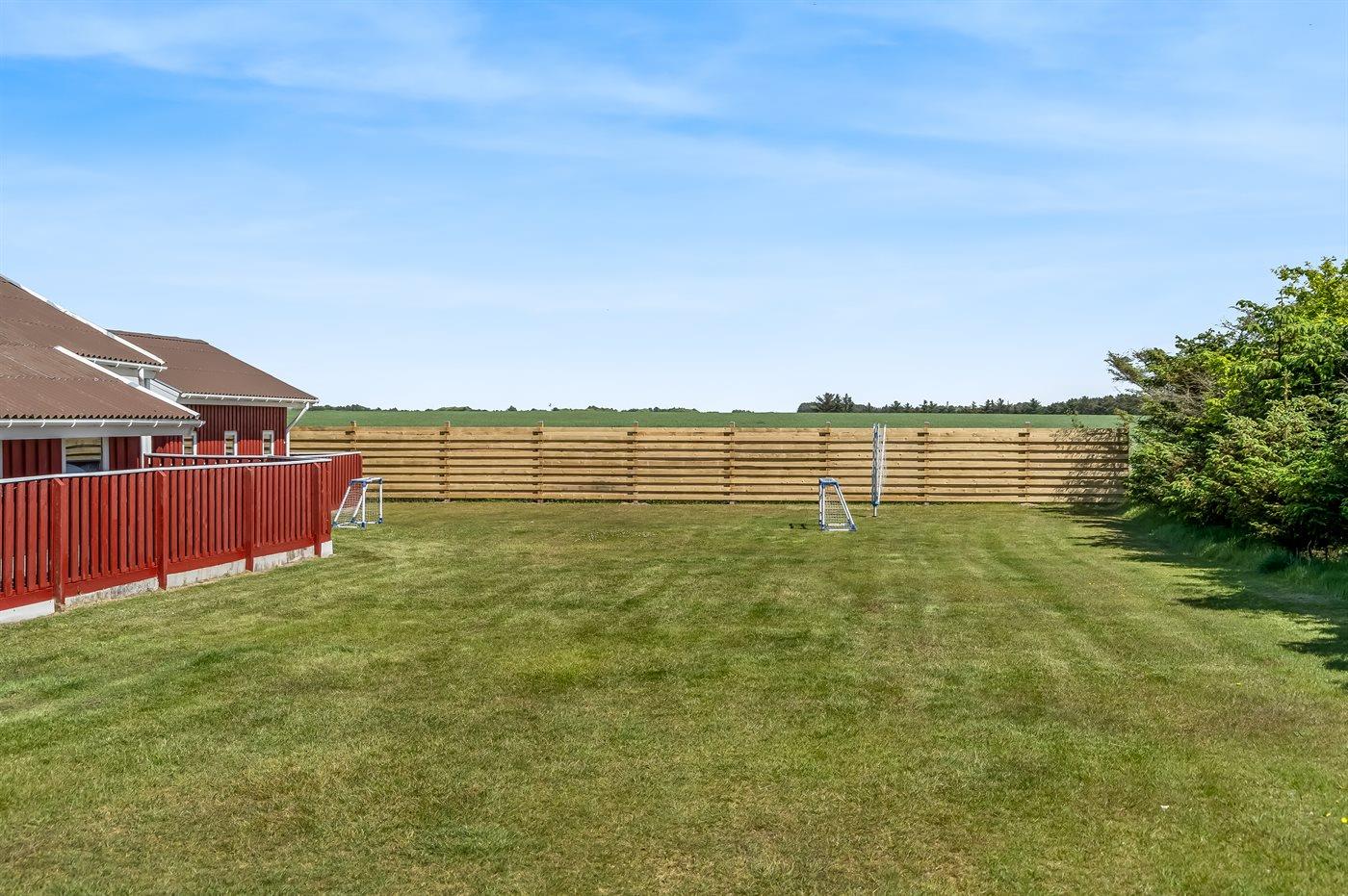 Ferieboligen er beliggende på en 1100 m² stor naturgrund. Der er 1200 m til havet. Nærmeste forretning er beliggende i en afstand af 500 m. Til ferieboligen hører åbent terrasseareal. Der er redskabsrum. Gynge. Sandkasse. Fodboldmål. Grill til rådighed. Parkering ved ferieboligen.
