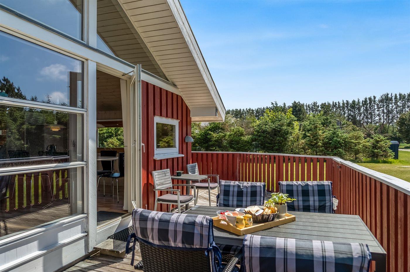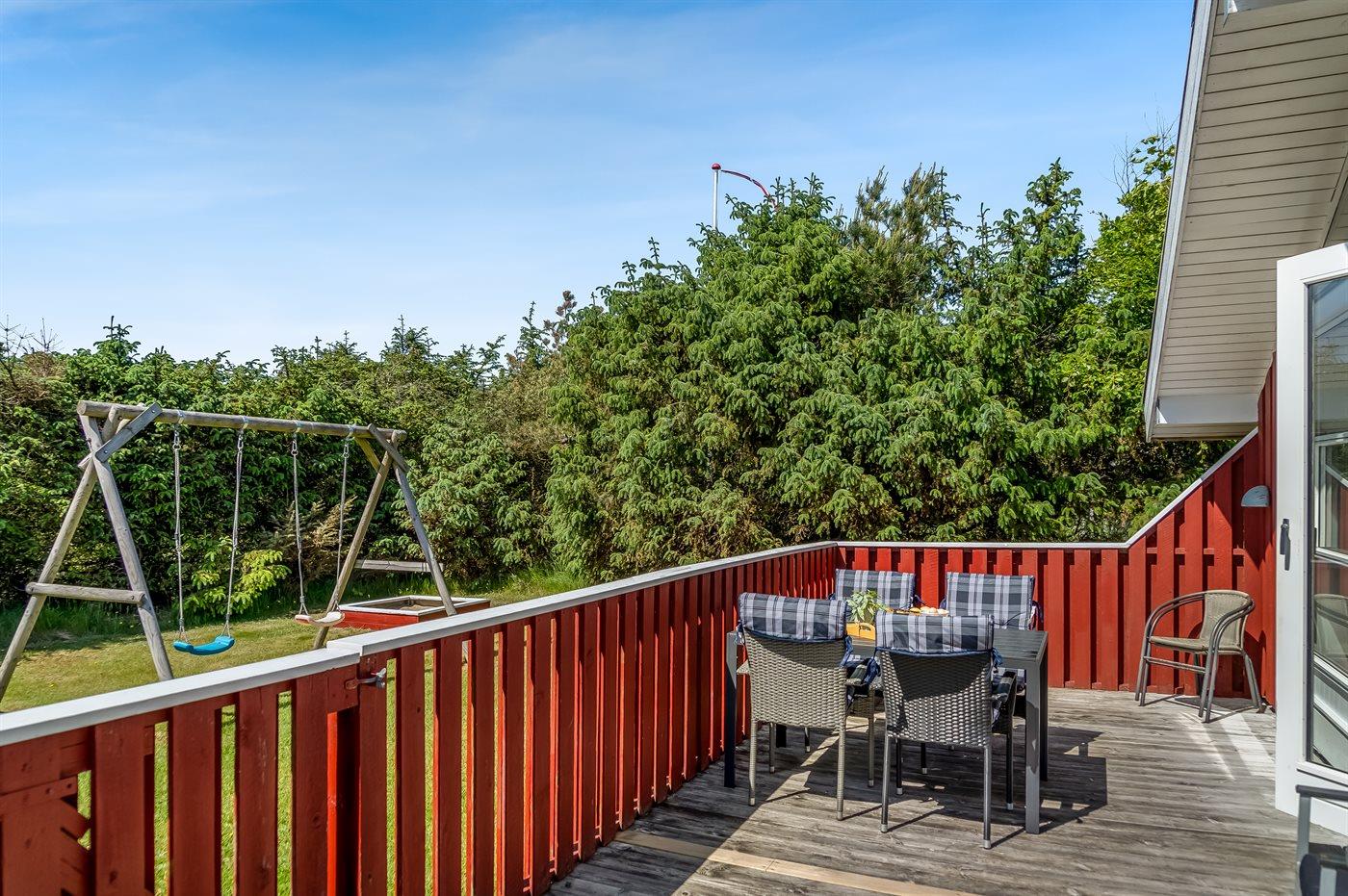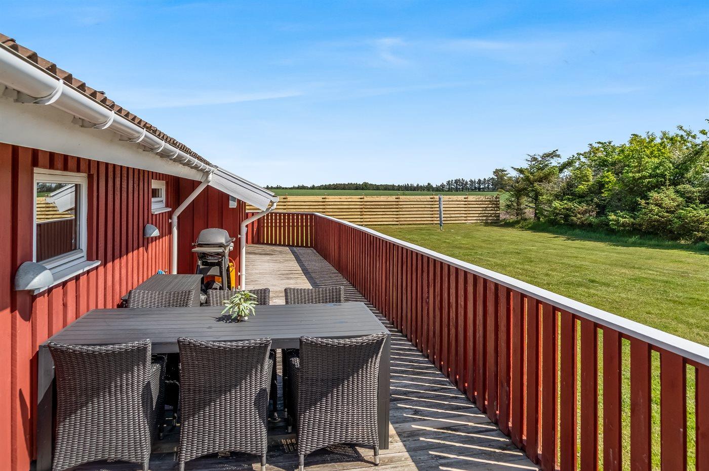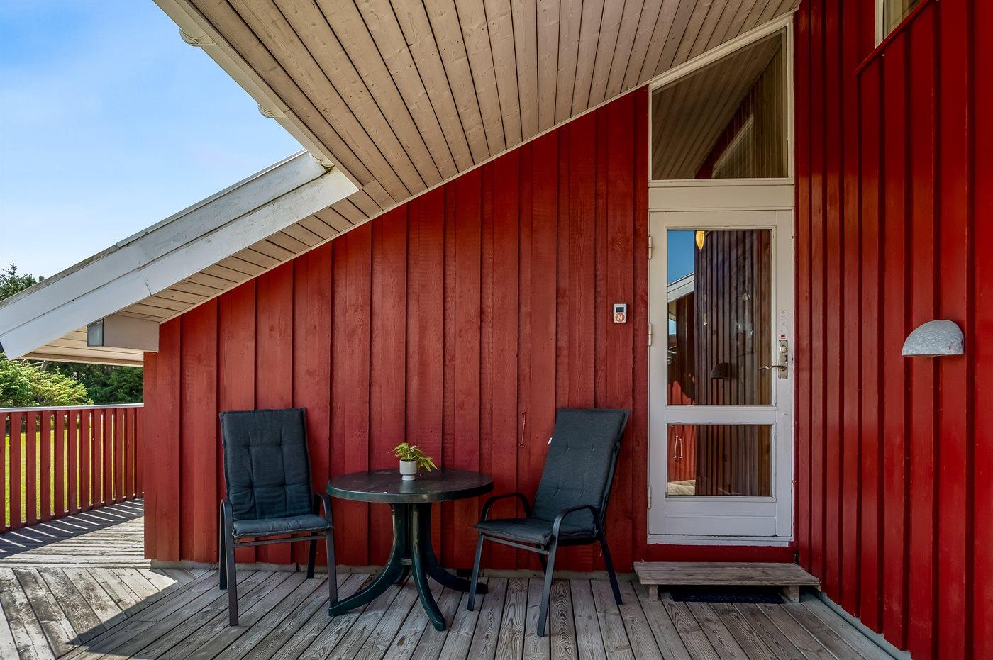 Ferieboligen er beliggende på en 1100 m² stor naturgrund. Der er 1200 m til havet. Nærmeste forretning er beliggende i en afstand af 500 m. Til ferieboligen hører åbent terrasseareal. Der er redskabsrum. Gynge. Sandkasse. Fodboldmål. Grill til rådighed. Parkering ved ferieboligen.