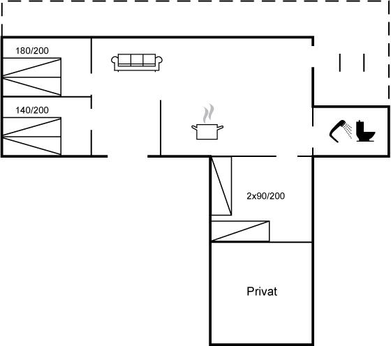 Der er i alt 3 soveværelser. Sovepladserne fordeler sig på: 4 sovepladser i dobbeltsenge. 4 sovepladser i køjesenge.
