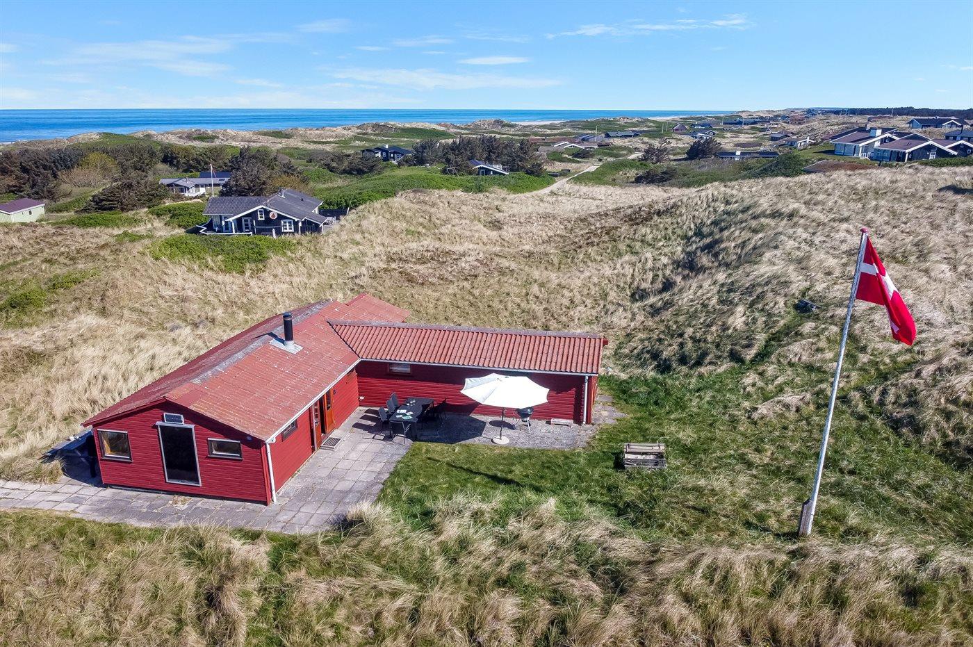 Ferieboligen er beliggende på en 4246 m² stor klitgrund. Der er 300 m til havet. Nærmeste forretning er beliggende i en afstand af 5000 m. Til ferieboligen hører åbent terrasseareal. Der er redskabsrum. Sandkasse. Udendørs bruser. Grill til rådighed. Parkering ved ferieboligen.