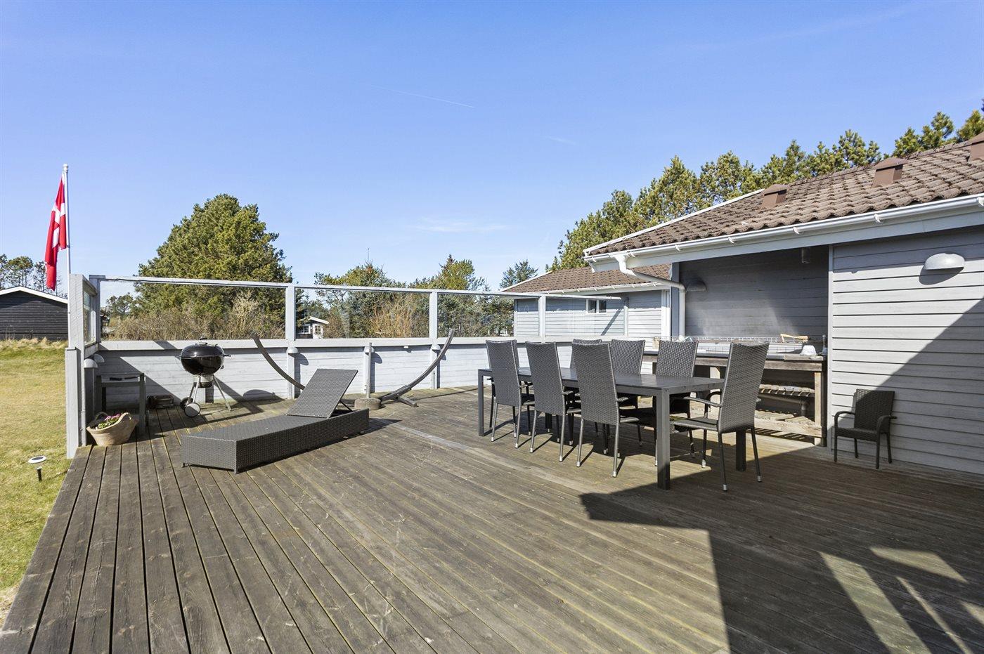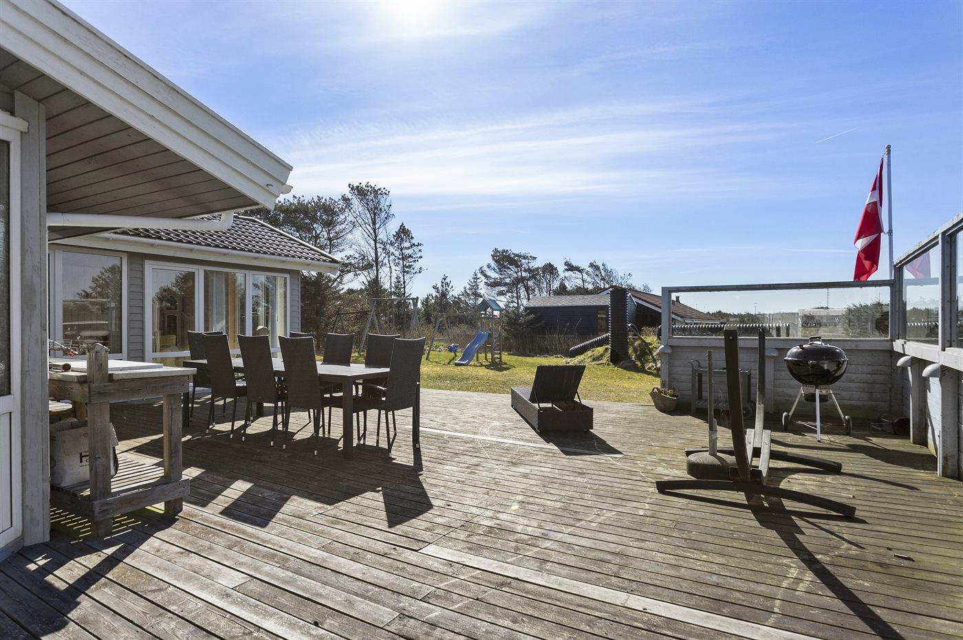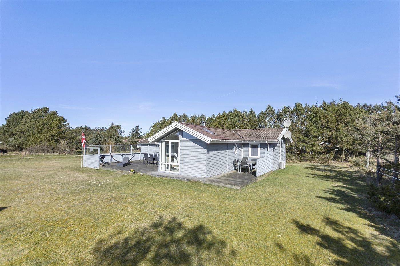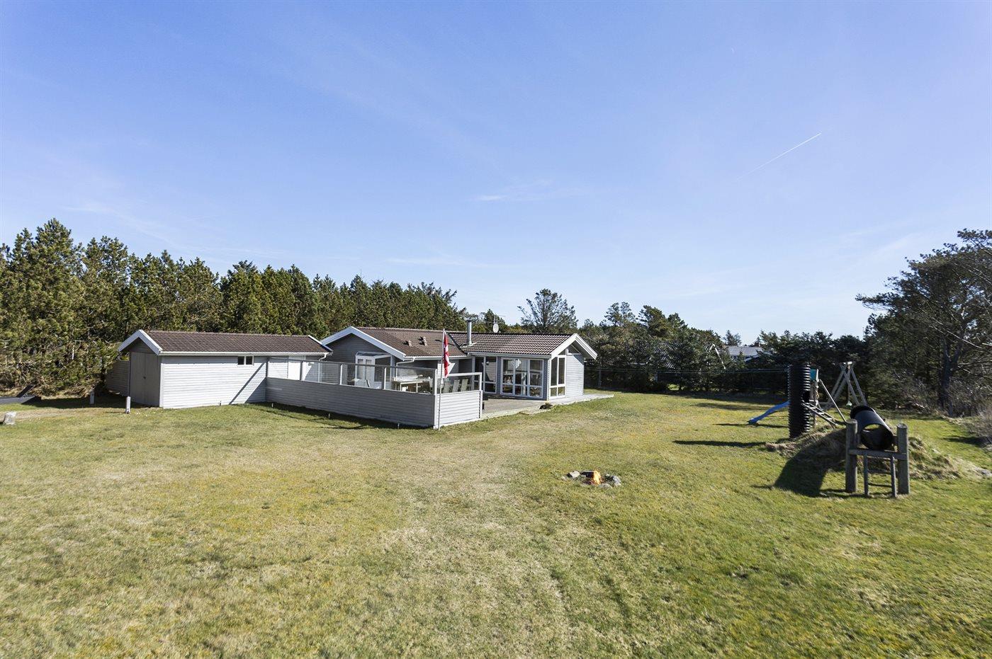 Ferieboligen er beliggende på en 1212 m² stor naturgrund. Grunden er indhegnet. Der er 1200 m til havet. Nærmeste forretning er beliggende i en afstand af 3500 m. Til ferieboligen hører åbent terrasseareal. Gynge. Legetårn. Rutchebane. Bålsted. Udendørs bruser. Grill til rådighed. Der er carport til rådighed. Der er installeret stik til opladning af elbil. Type 2 stik. Med 11 kW ladeeffekt. Parkering ved ferieboligen.