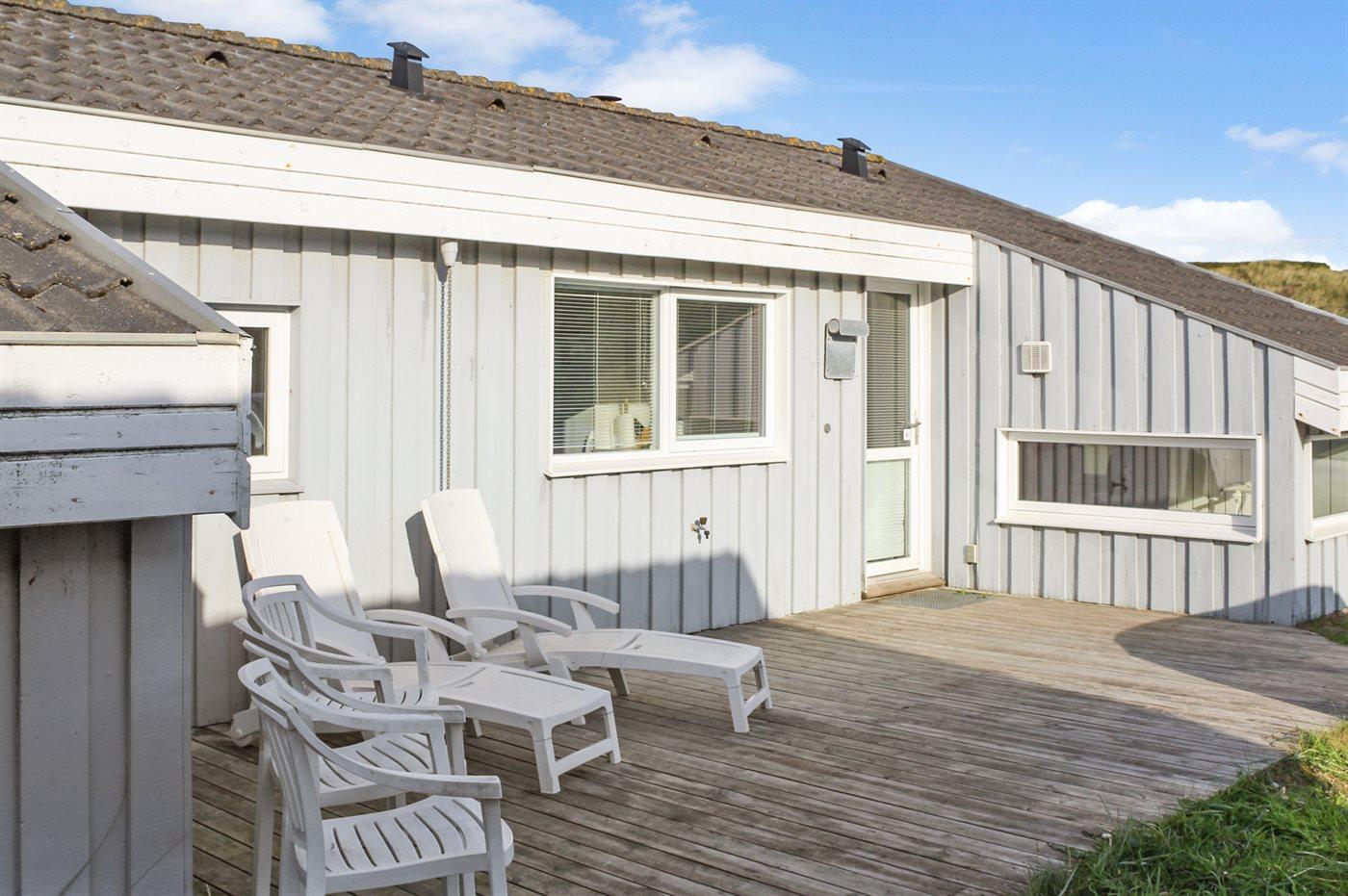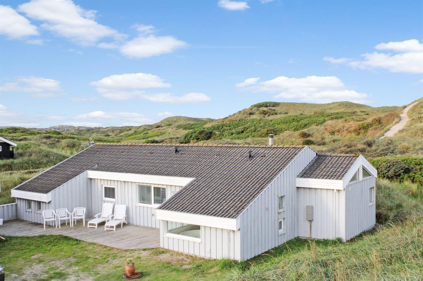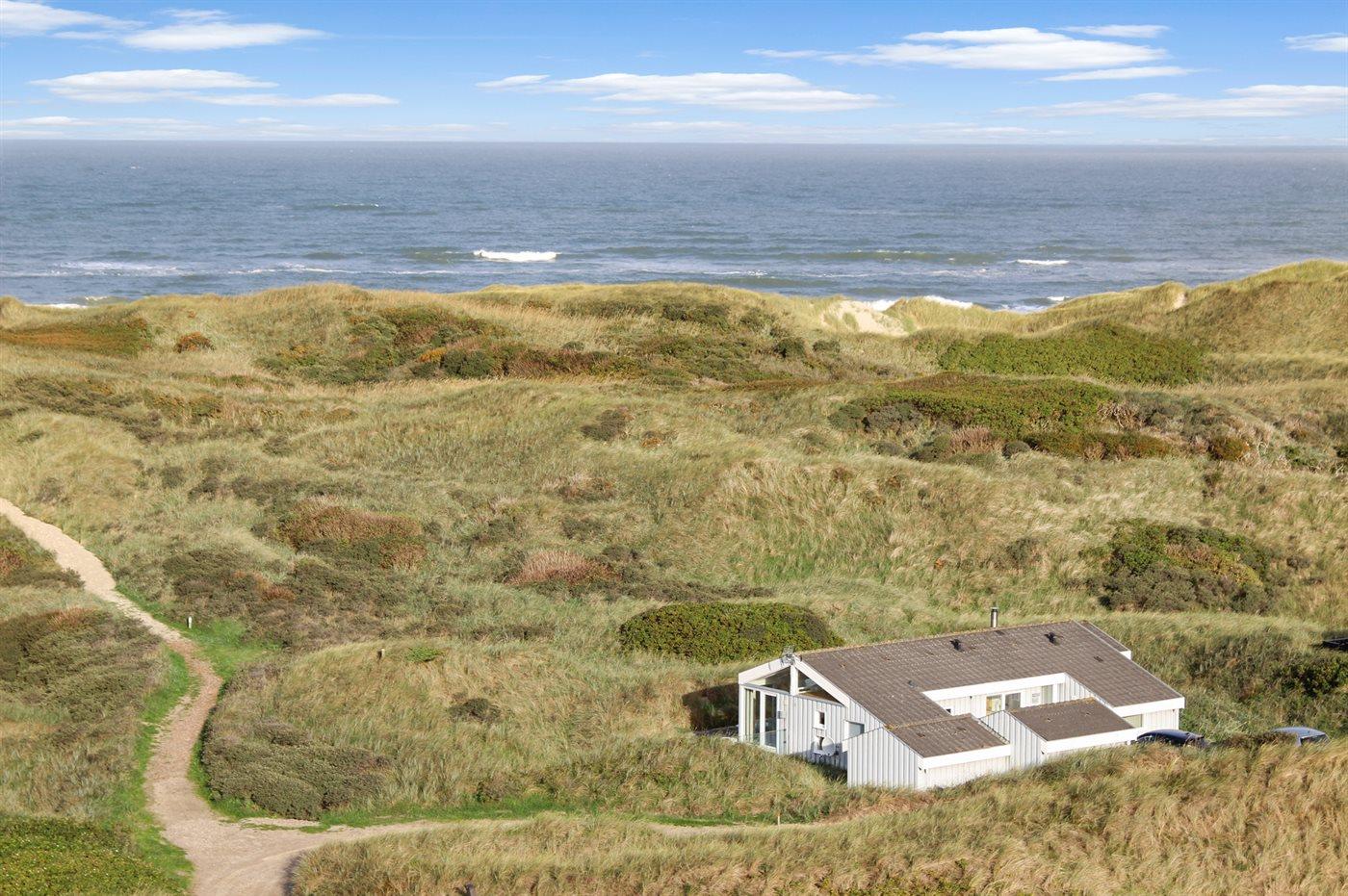 Et stort og veludstyret sommerhus beliggende i første klitrække, på en meget stor og kuperet grund, med direkte adgang til stranden. Fra grunden er der havudsigt, og fra huset en fantastisk udsigt til klitterne. Huset er indrettet lyst og i forskudt niveau med sænket opholdsstue og henvender sig i særdeleshed til det voksne publikum.