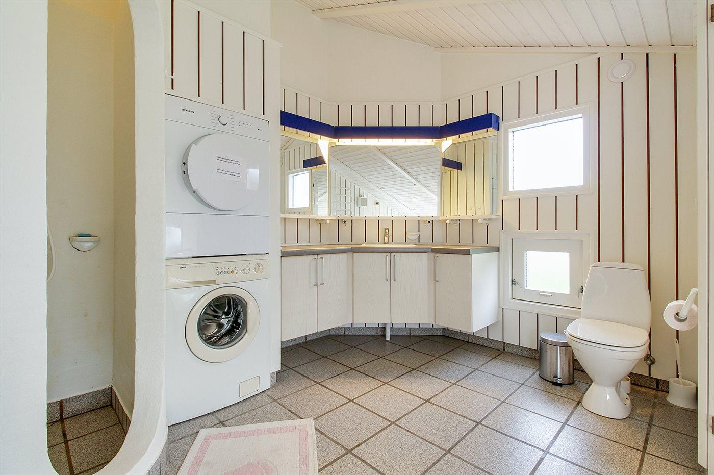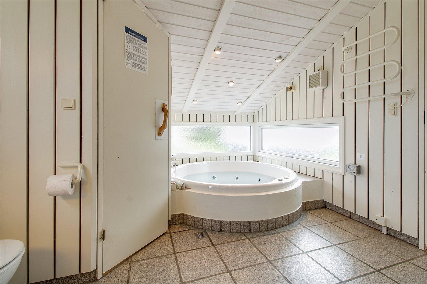 Der er 2 badeværelser med bruseniche og 2 toiletter. Der er gulvvarme på 2 badeværelser. I saunaen er der mulighed for afslapning.