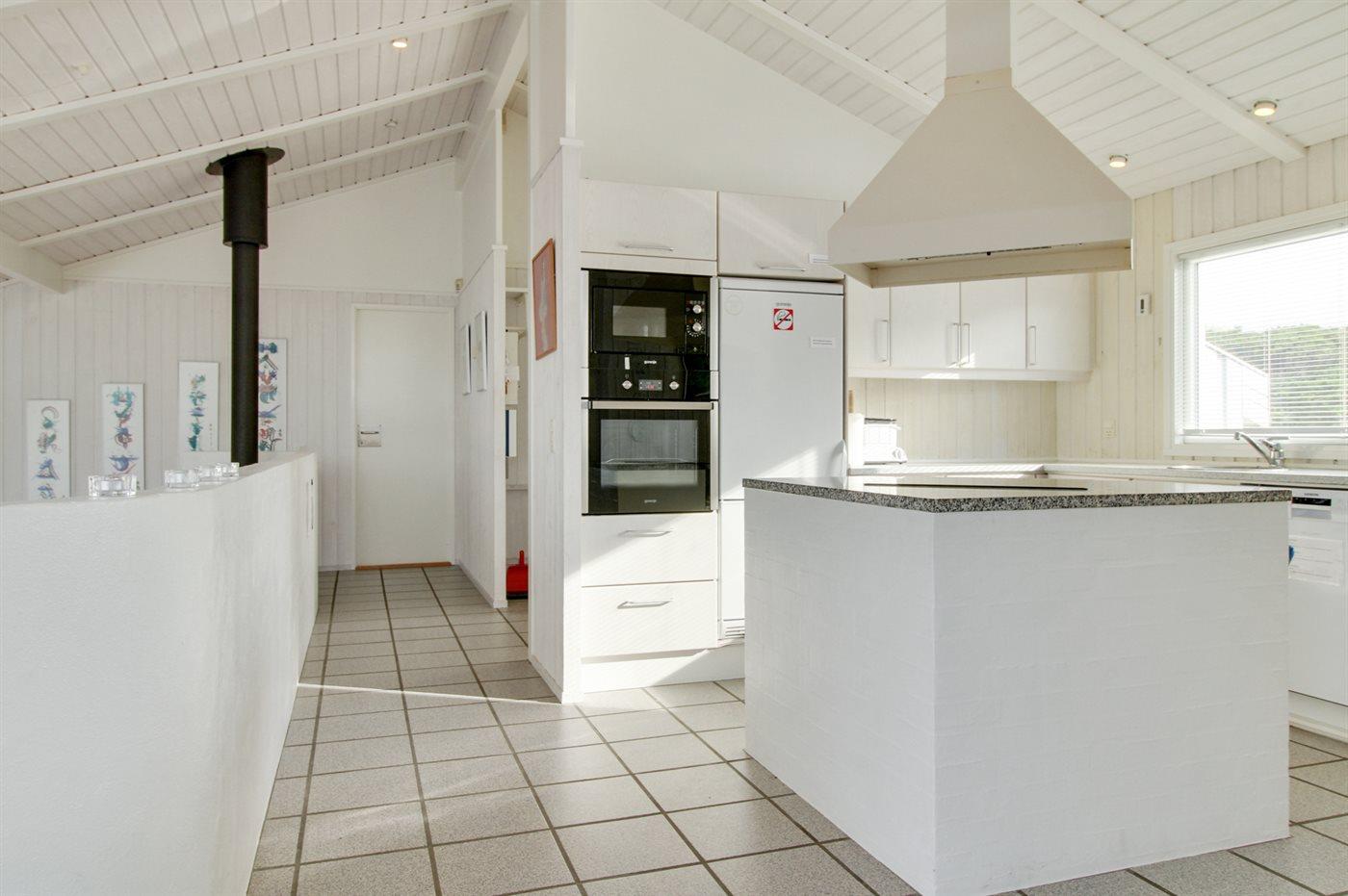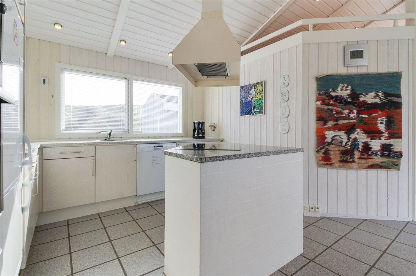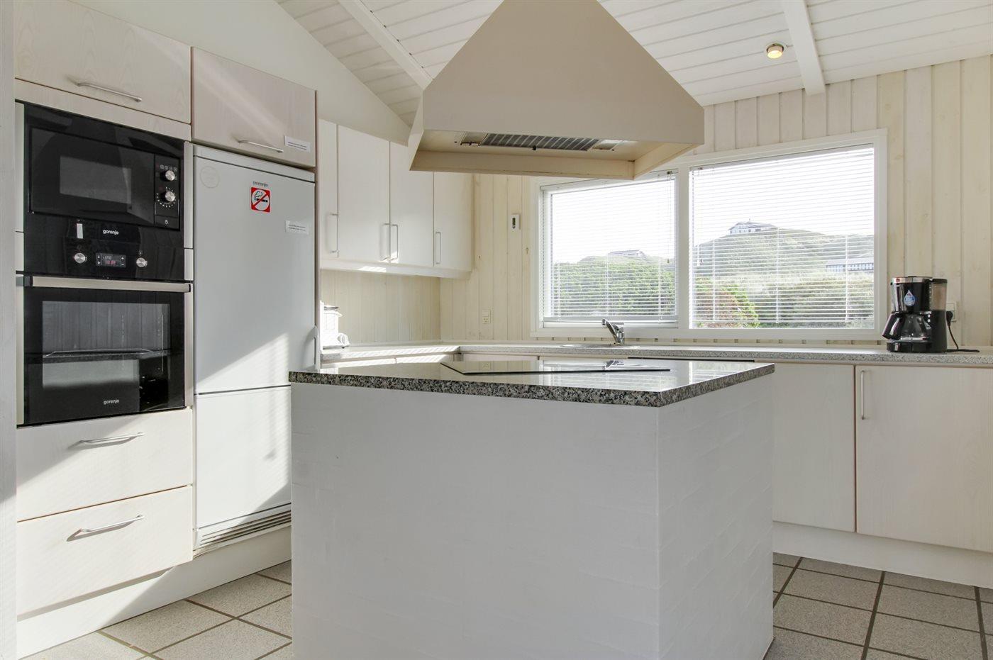 Køkkenet er udstyret med 1 køleskab. Der er 4 keramiske kogeplader, varmluftovn, mikrobølgeovn samt opvaskemaskine.