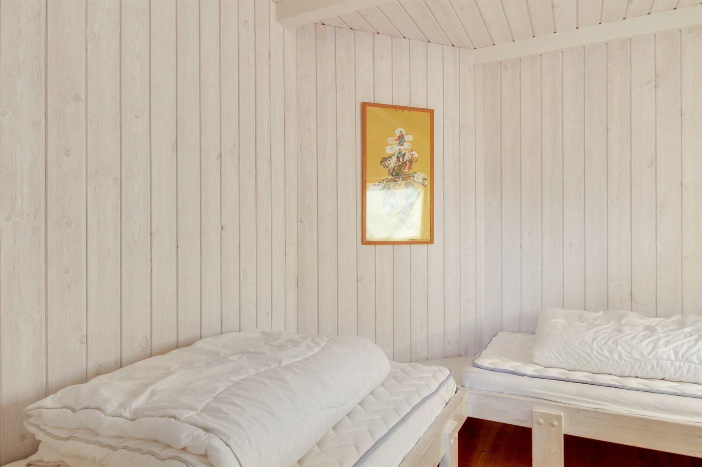 Der er i alt 3 soveværelser. Sovepladserne fordeler sig på: 4 sovepladser i dobbeltsenge. 2 sovepladser i enkeltsenge.
