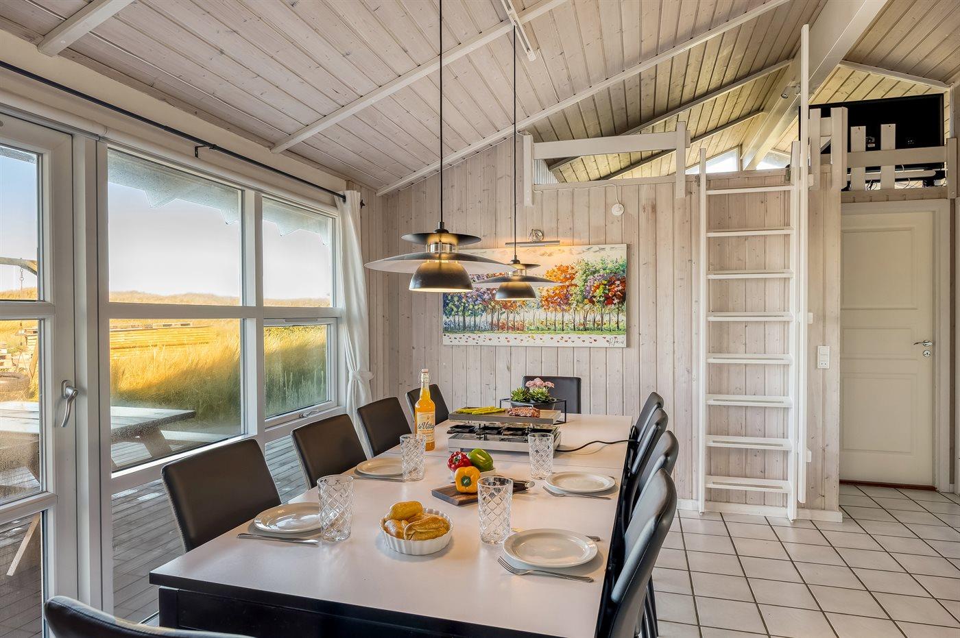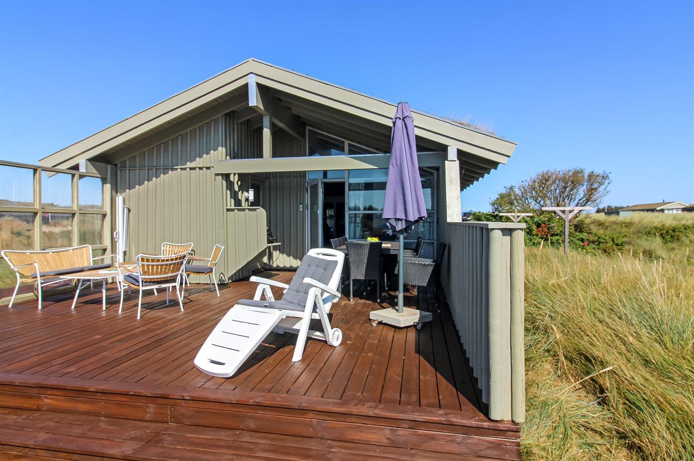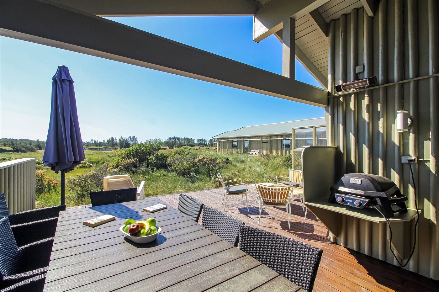 Er vejret til afslapning udenfor, i det skønne danske sommervejr, så er det bare at træde ud på den store træterrasse, som ligger som en forlængelse af huset. Her er du straks i ét med naturen og du kan nyde udsigten til det kuperede landskab, eller der er mulighed for tage et kapløb ned til Vesterhavet ad de mange stier og se hvem der vinder præmien for feriens første dukkert.