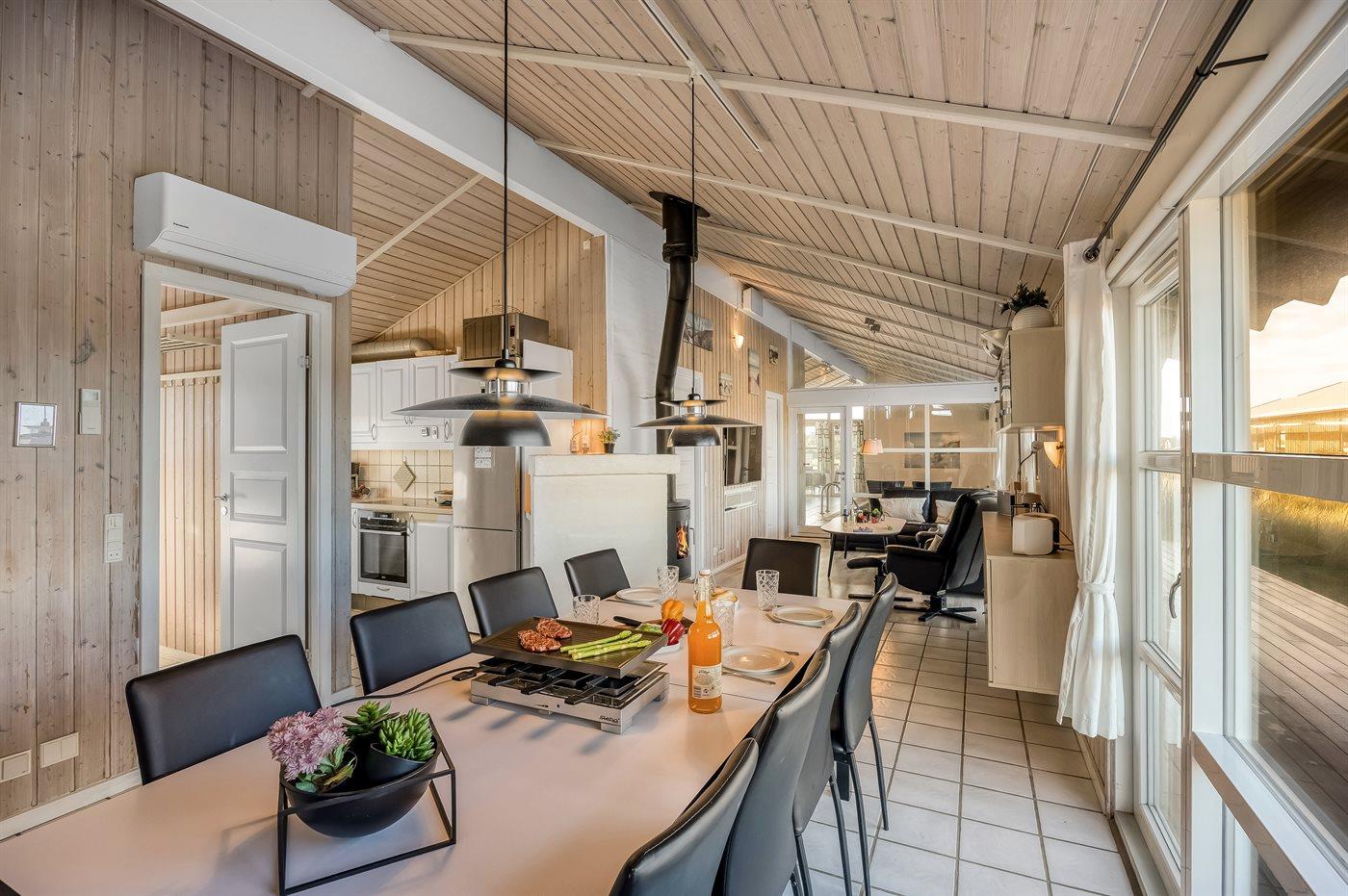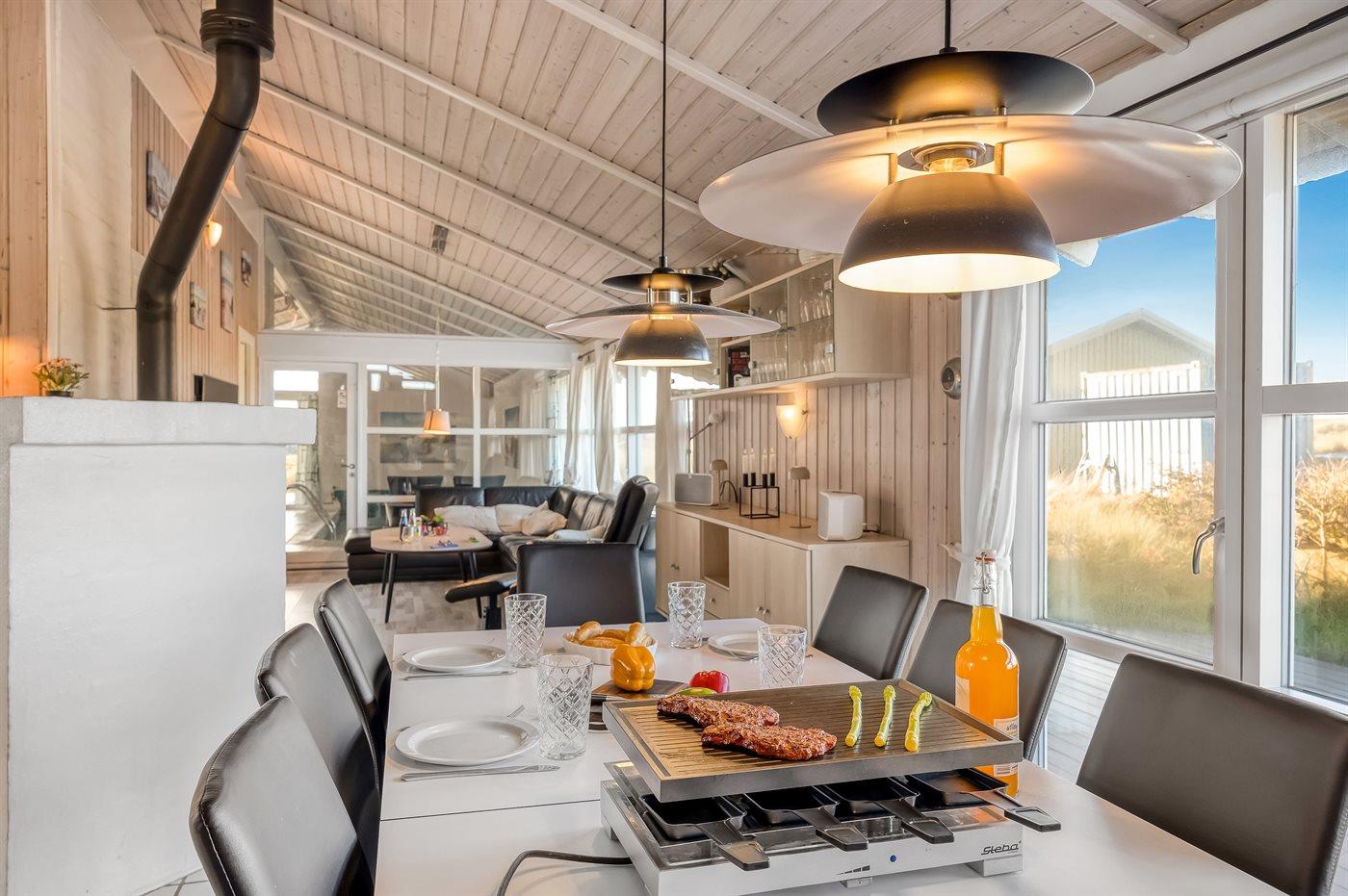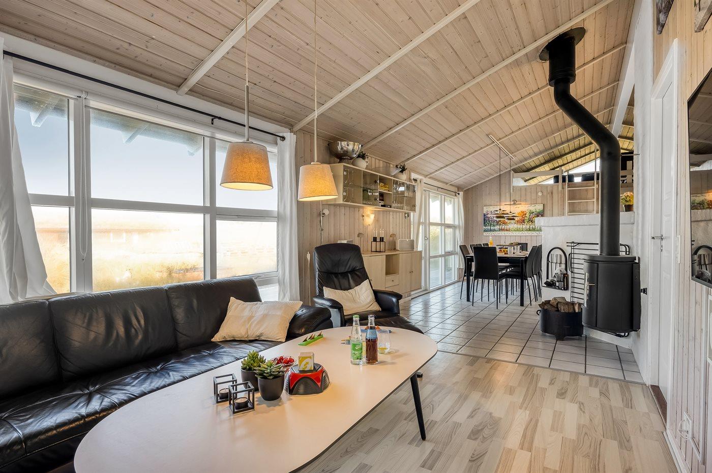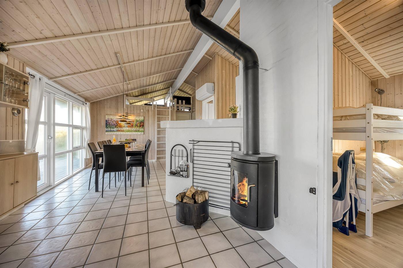 Er vejret lidt mere lunefuld, så er huset dejligt og rummeligt og byder på god plads til alle former for hyggeligt samvær, du kan krybe sammen i sofaen med en god bog, mens du hører brændeovnen knitre i baggrunden og andre måske hygge i køkkenet med boller og varm kakao.