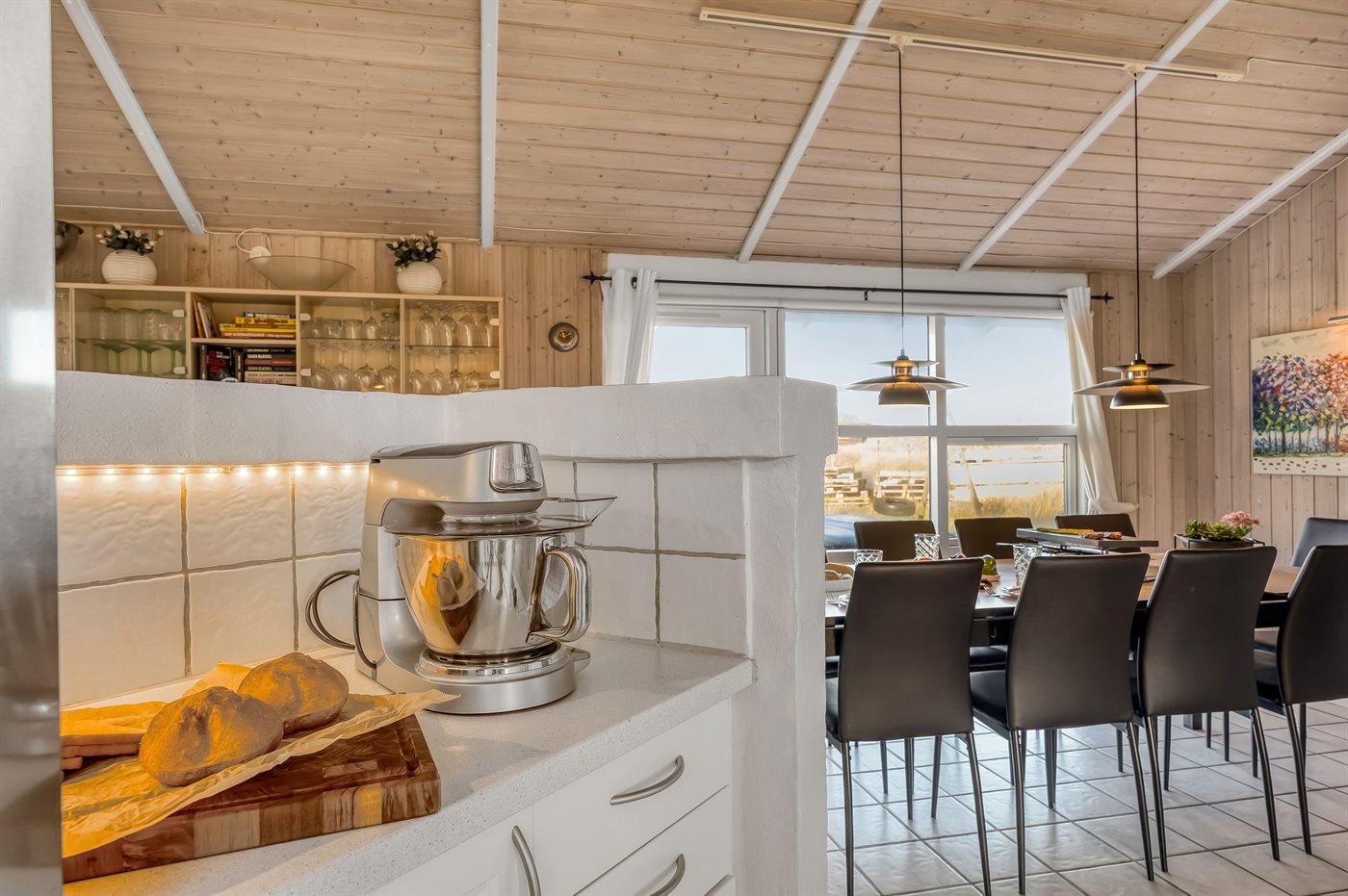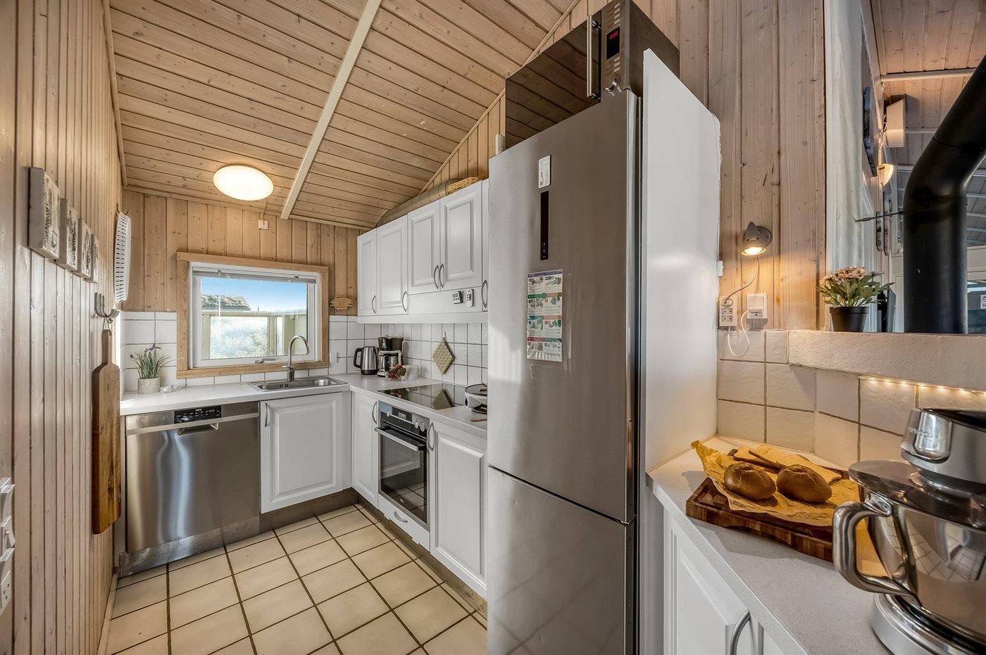 Køkkenet er udstyret med 1 køleskab. Der er 4 induktionskogeplader, varmluftovn, mikrobølgeovn samt opvaskemaskine.