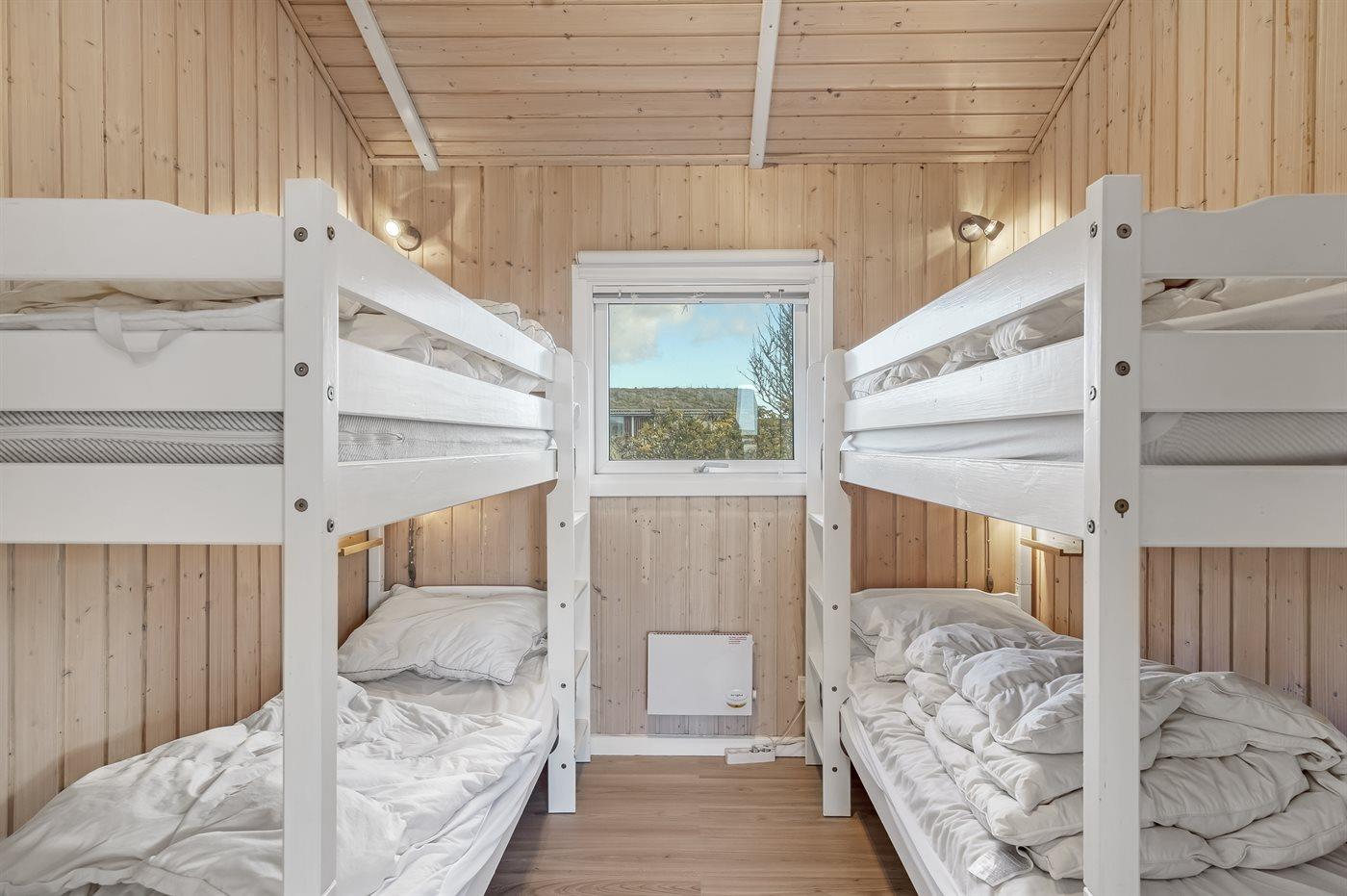 Der er i alt 4 soveværelser. Sovepladserne fordeler sig på: 6 sovepladser i dobbeltsenge. 4 sovepladser i køjesenge. Derudover er der 1 stk. barneseng.