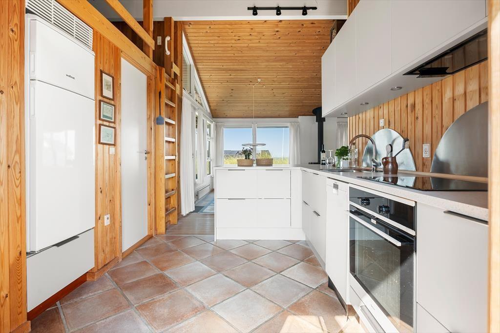 Inden døre i sommerhuset oplever du straks en lys og imødekommende atmosfære. Loftet til kip i stuen og køkkenet giver en dejlig følelse af rummelighed, mens brændeovnen sætter stemningen for hyggelige aftener med varme og ro. Stuen og spisestuen er smagfuldt integreret, og køkkenet tilbyder ikke kun alt, hvad du har brug for til feriemåltiderne – men også en betagende havudsigt, der gør madlavningen til en fornøjelse. Sommerhuset rummer tre værelser, to hemse med madrasser og et badeværelse med bruser og gulvvarme. Her er kvadratmeterne udnyttet optimalt, så både familier og par kan nyde deres ophold i komfortable rammer.