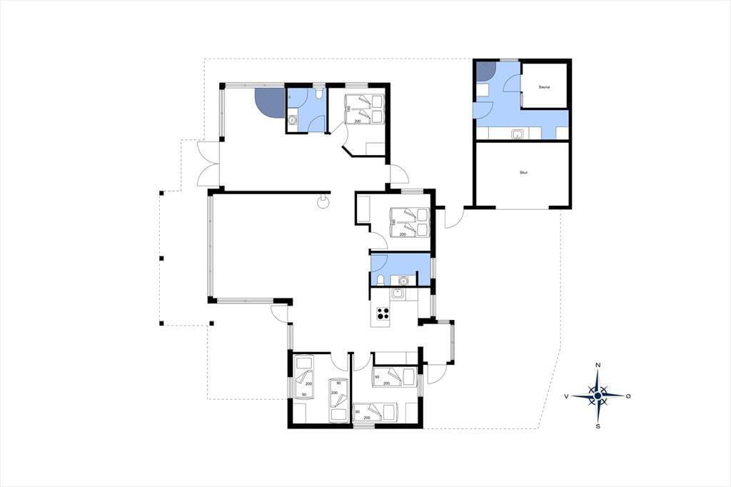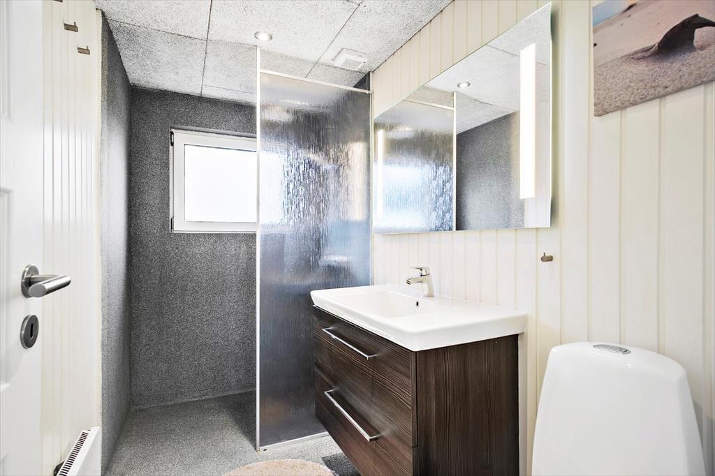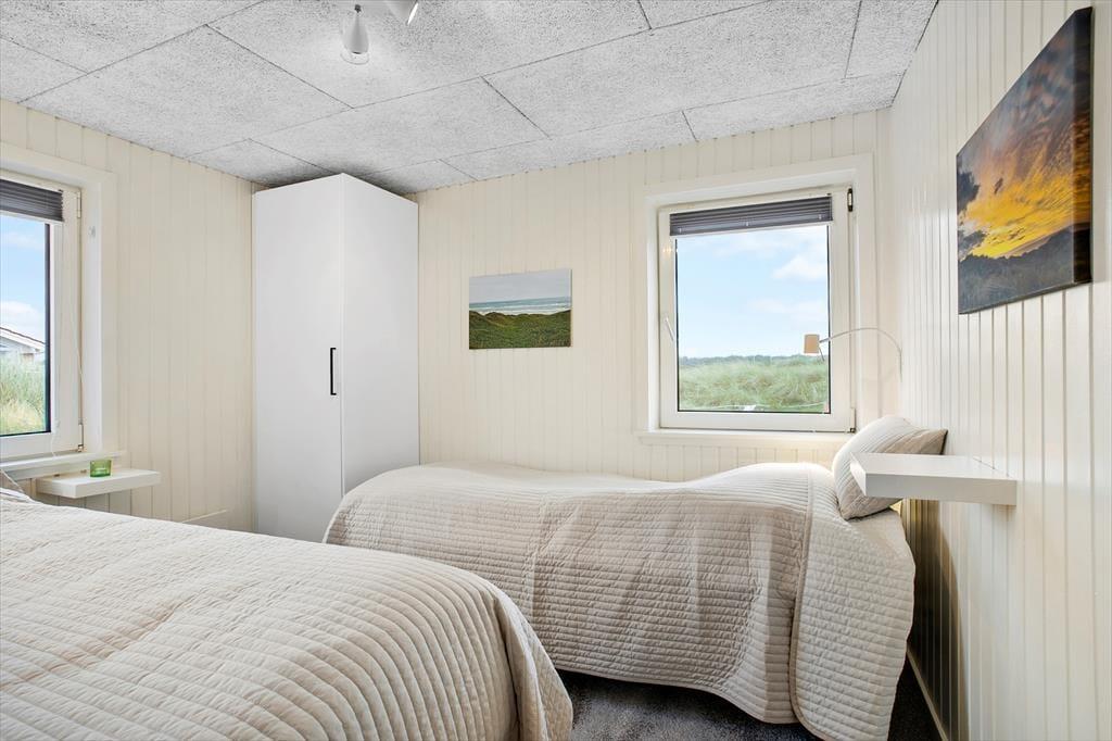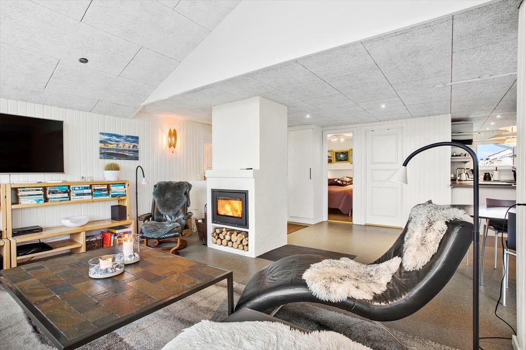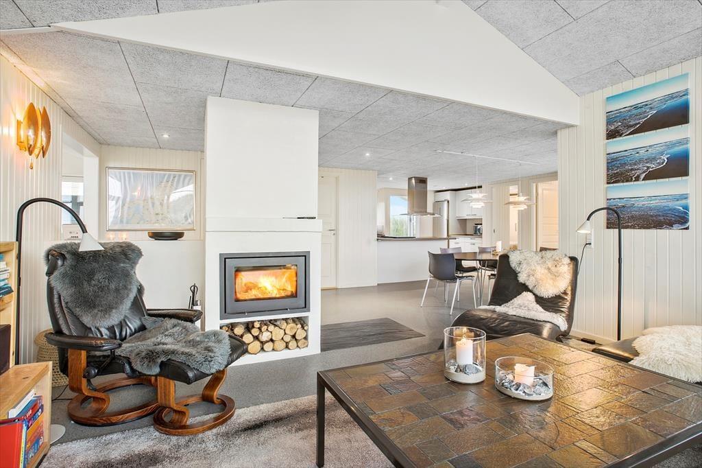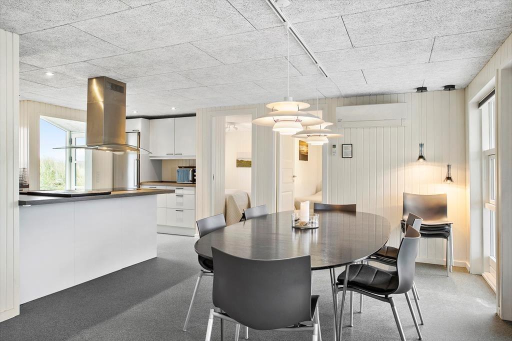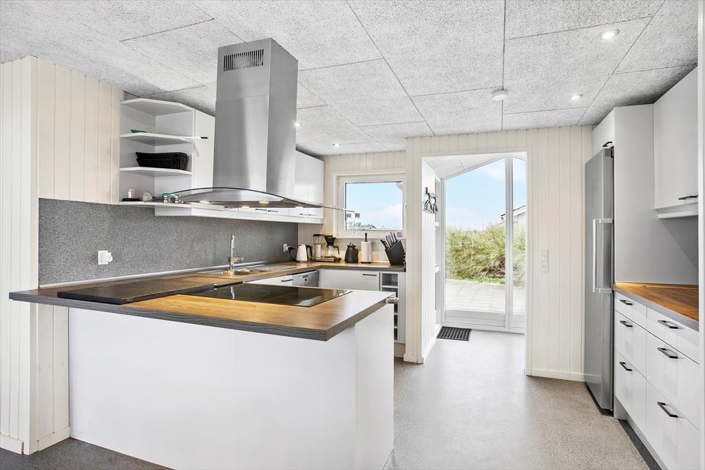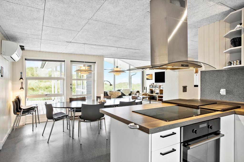 Den oprindelige del af huset, samt tilbygningen, giver i alt et 135 m2 gennemrenoveret kvalitetssommerhus med en fremragende beliggenhed for enden af vejen og på toppen af en klit med fantastisk udsigt over området og Vesterhavet. Huset er moderne indrettet og fra de mange glasfacader, som lukker det specielle nordjyske lys ind, har man direkte udsigt til den store klitgrund, som grænser lige op til stranden i Grønhøj. Køkkenet ligger i åben forbindelse med både spisepladsen og stuen, hvilket gør at alle kan være sammen, selvom man har forskellige gøremål. Den ene del af huset er indrettet som ”wellness-område” med bla. lækkert spabad, hvorfra man kan nyde havudsigten – herfra er der udgang til annekset med infrarød sauna og mulighed for et efterfølgende brusebad. Det er værd at bemærke de flotte og slidstærke epoxy gulve, som er gennemgående og dermed sætter sit positive præg på huset som opvarmes med varmepumpe, brændeovn og elradiatorer på værelserne (ingen gulvvarme).