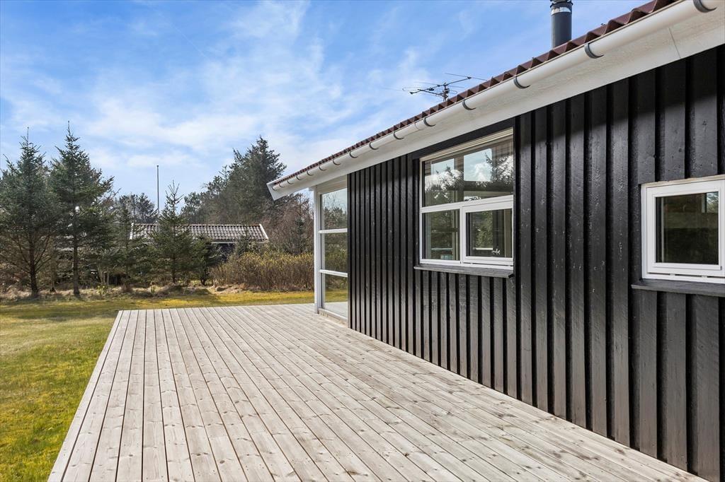 Træk stikket ud og nyd ferien i dette hyggelige sommerhus, der ligger på en skøn, solrig grund i eftertragtede Grønhøj – blot 900 meter fra Vesterhavets brusende blå.