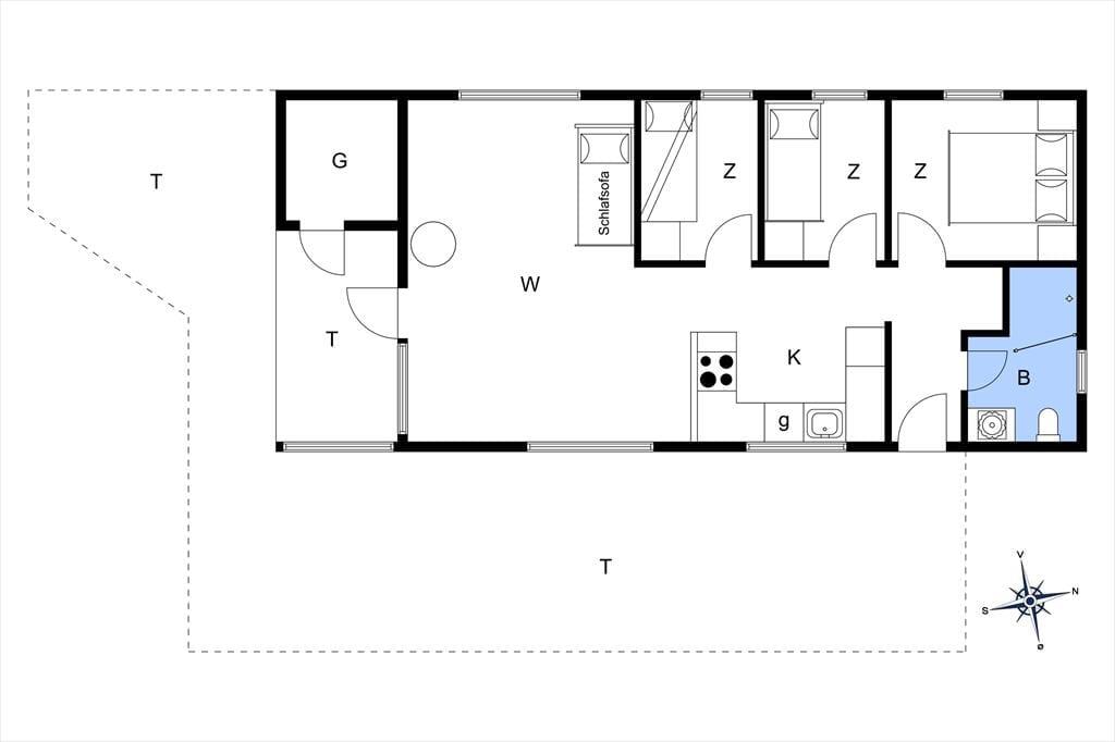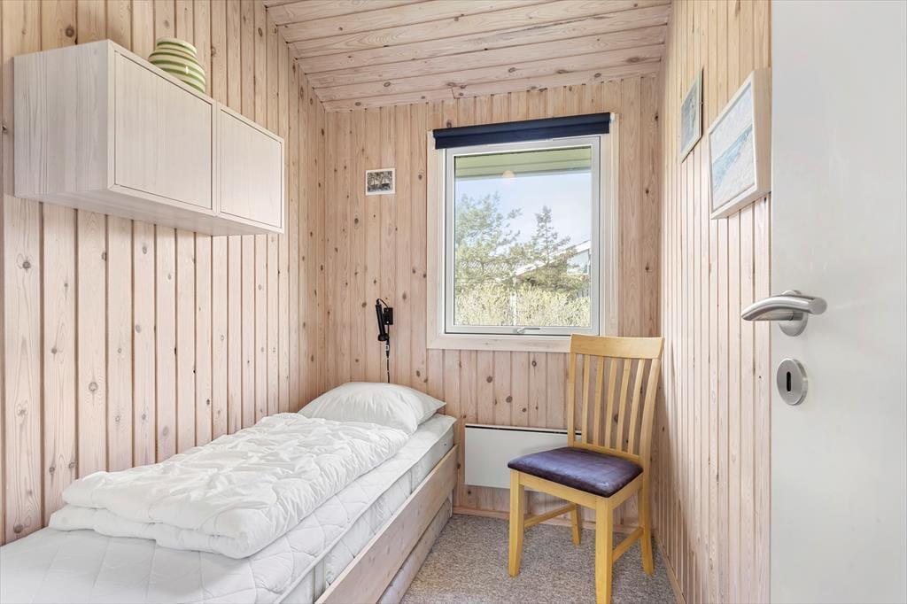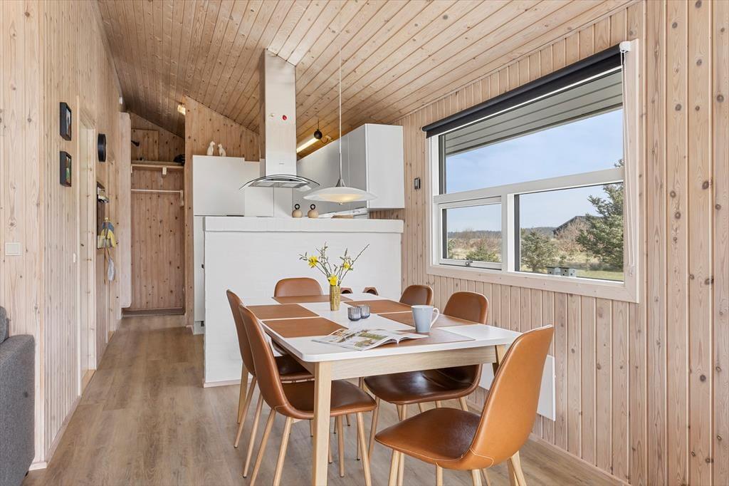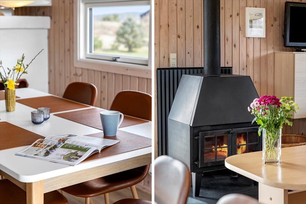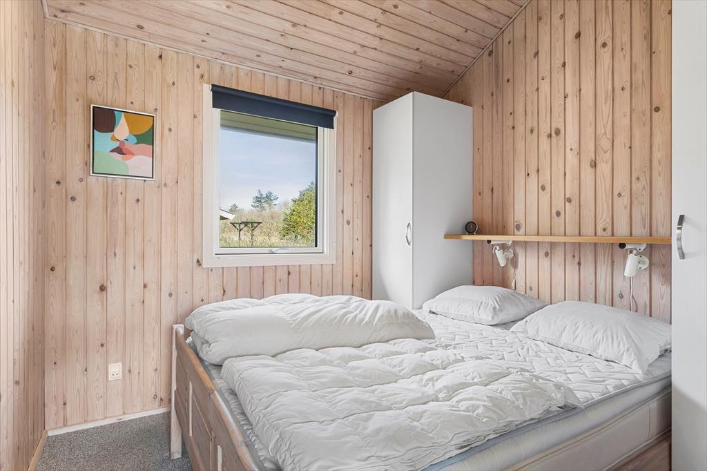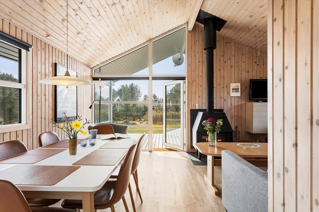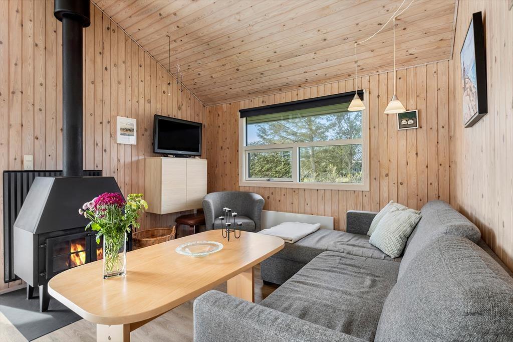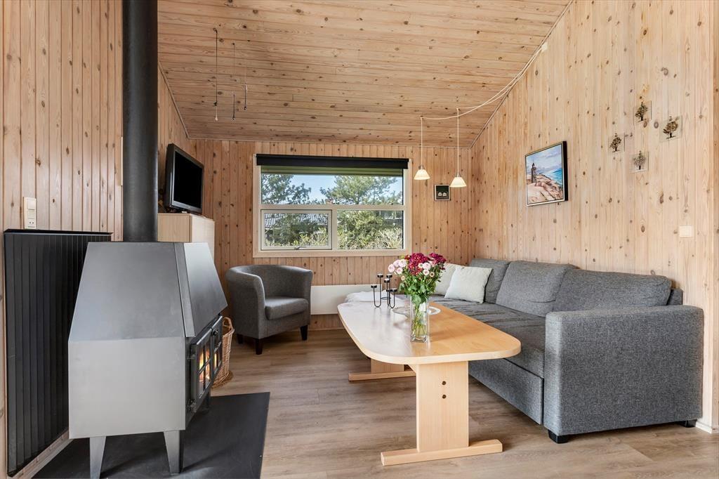 Huset er indrettet med det gode sommerhusliv for øje. Hjertet i boligen er det hyggelige opholdsareal, hvor køkken, alrum og stue ligger i åben forbindelse. Lyset strømmer ind gennem de mange vinduespartier, og de træbeklædte vægge skaber den helt rigtige sommerhusstemning. Her er præcis det, der skal bruges, og intet mere. Skulle aftenerne blive kølige, kan I glæde jer over brændeovnen, der både spreder varme og hygge. Huset byder på 3 soverum. Hertil kommer en sovesofa i stuen, hvor man kan sove, hvis man er seks personer. Endelig er der et nydeligt badeværelse med brus.