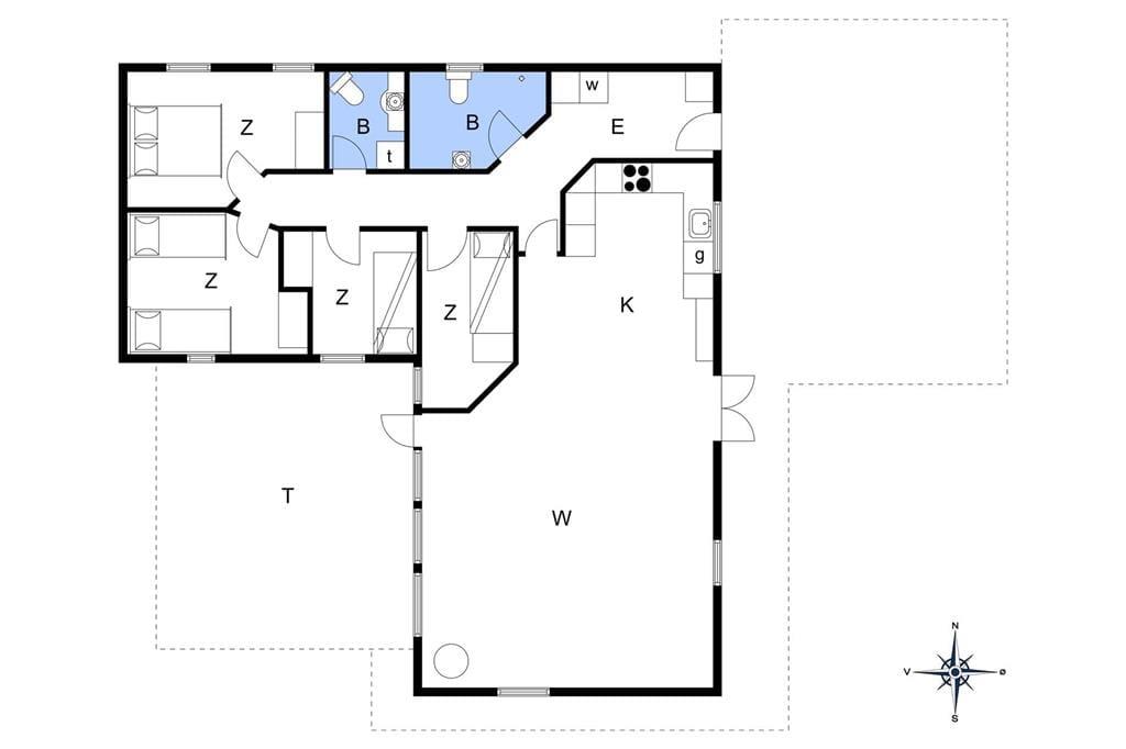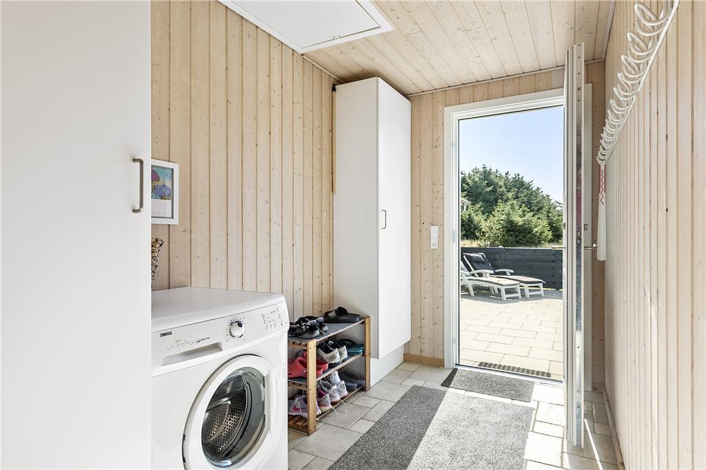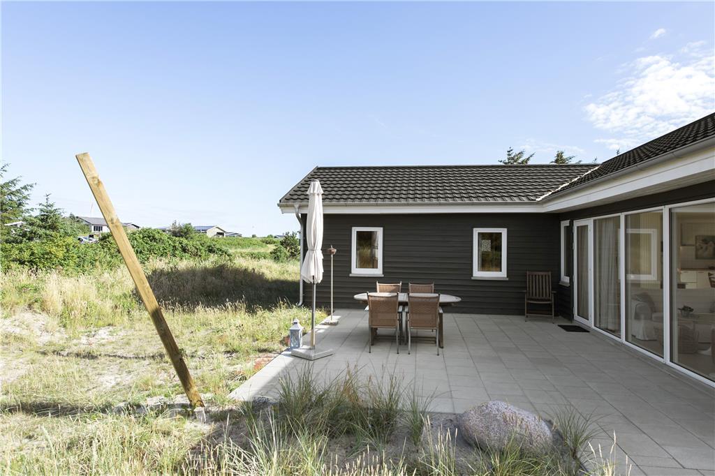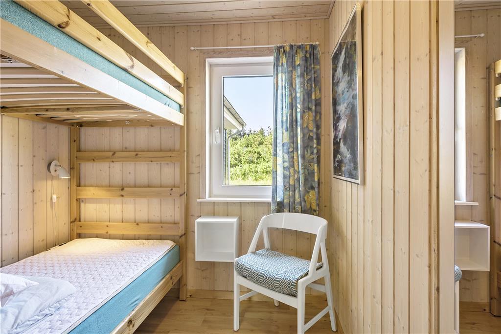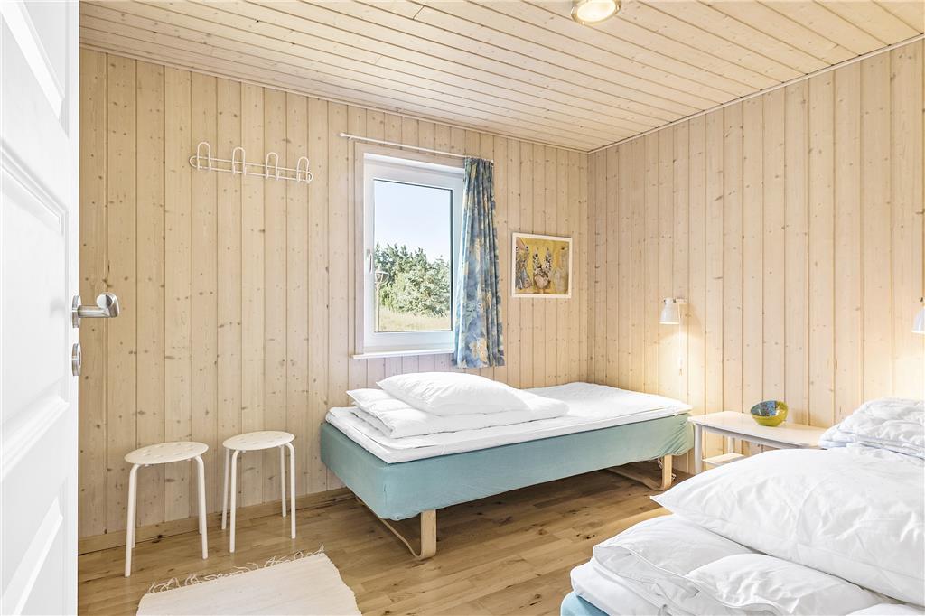 Dette sommerhus er veludstyret med en masse gode rammer og faciliteter samt trådløst internet, her mangler ikke noget. Indretningen og interiøret er holdt i en klassisk og charmerende stil med masser af lys fra de store vinduespartier i det åbne opholdsrum. Sommerhuset er velegnet til både familier og par, med 4 soveværelser og med to badeværelser behøver man ikke vente på hinanden om morgenen. Midt i opholdsrummet står en brændeovn, som hurtigt spreder varme og hygge på de kolde dage, mens man om sommeren kan træde ud på de åbne terrasser som omkranser huset. Hele sommerhuset byder på virkelig gode forhold for både voksne og børn!