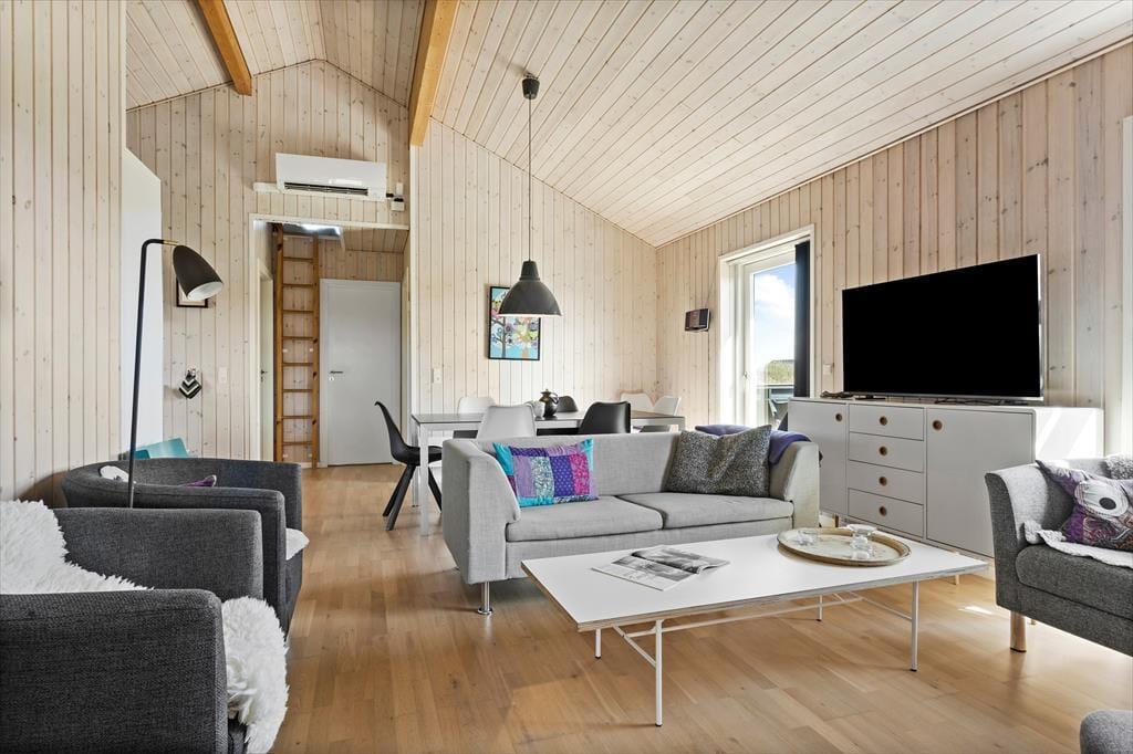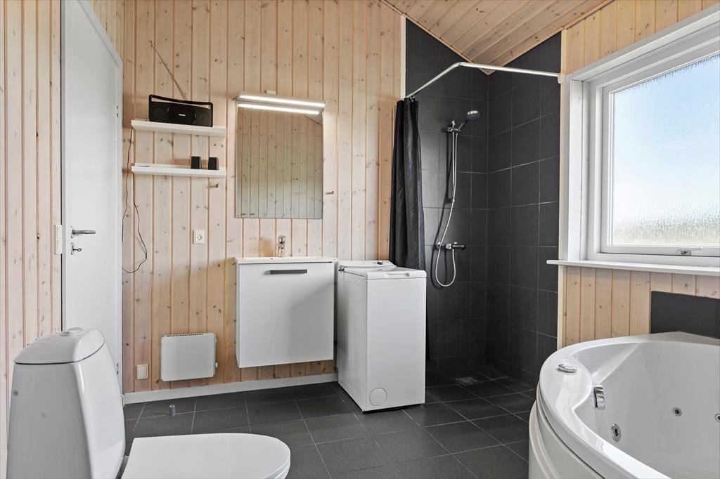 Træd indenfor i dette velholdte sommerhus, hvor loft til kip og store vinduer skaber en lys og luftig atmosfære. Den rummelige opholdsstue med brændeovn indbyder til hyggelige stunder foran flammernes knitren, mens det åbne køkken gør det nemt at tilberede lækre måltider sammen. Med fire gode soveværelser og to badeværelser er der plads til hele familien – og måske et par gæster. Det ene badeværelse er udstyret med spabad og sauna, hvor du kan forkæle dig selv med en stund i luksus efter en dag ved stranden. Her kan du nyde roen og lade stressen forsvinde, mens du slapper af i de varme omgivelser.