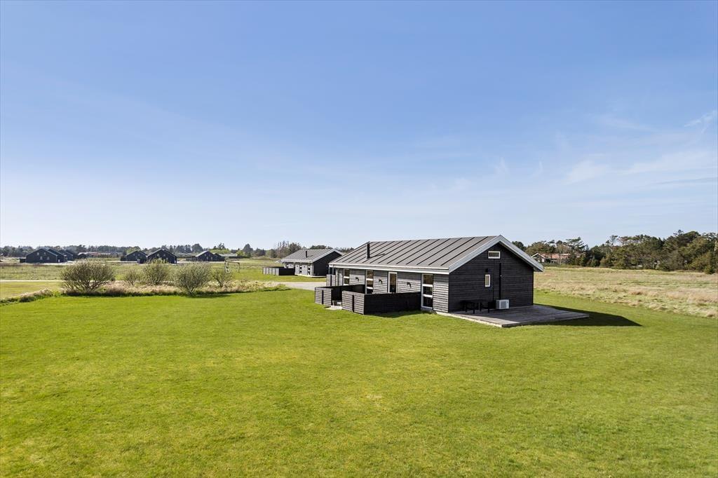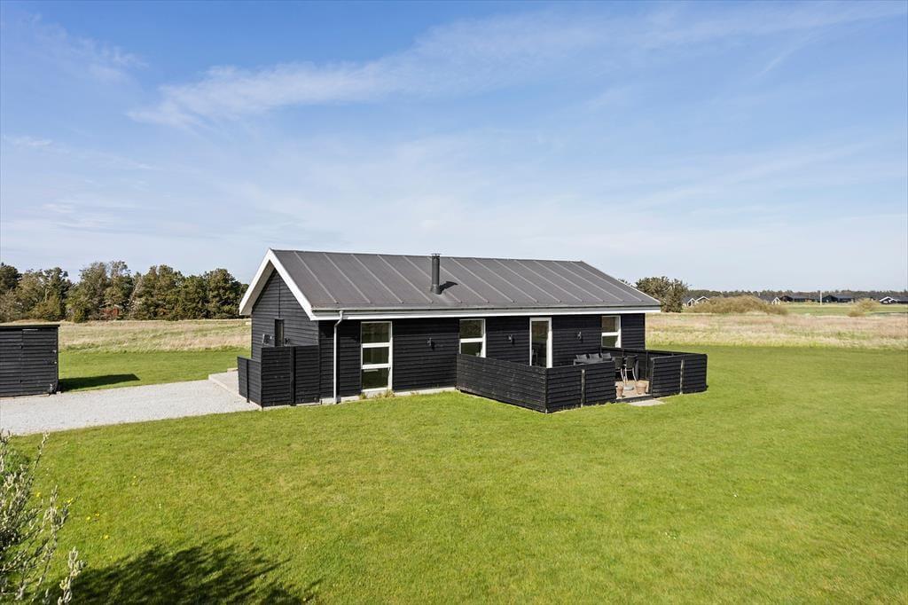 Udendørs byder sommerhuset på flere skønne terrasser, hvor du kan nyde solen fra morgen til aften. Her er der plads til at starte dagen med morgenkaffen i den friske luft, eller afslutte dagen med en hyggelig grillaften, mens solen går ned over de smukke klitter. Grunden er stor og grøn, med god plads til leg og aktiviteter for både børn og voksne. På de varme sommerdage kan du tage en kort gåtur ned til Grønhøj Strand, hvor sandkornene mellem tæerne og Vesterhavets bølger vil forfriske krop og sjæl. Denne oase er perfekt til afslapning og samvær med dem, du holder af.