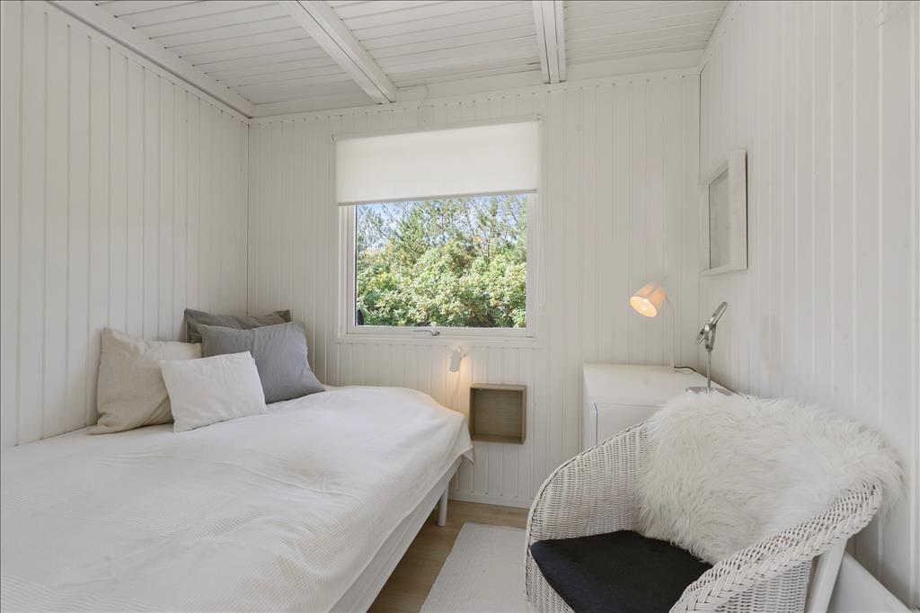 Huset, som nærmere bestemt er et klassisk træsommerhus på 82 m2, fungerer som en perfekt base for ferien. Det fremstår pænt og velholdt med en særdeles lys atmosfære inden døre. Trævæggene er nemlig hvidmalede i alle rum – selv på badeværelset – og også møblementet er holdt i douce farvenuancer i bedste feriehusstil. Stuen og køkkenet ligger i åben forbindelse, så brætspil, krimilæsning, hyggesnakke og madlavning kommer til at foregå i samme dejlige opholdsrum. Efter aftensmaden kan I tænde op i brændeovnen, hvis vejret indbyder til det, og når det er sengetid, har I hele fire soveværelser at fordele jer på.