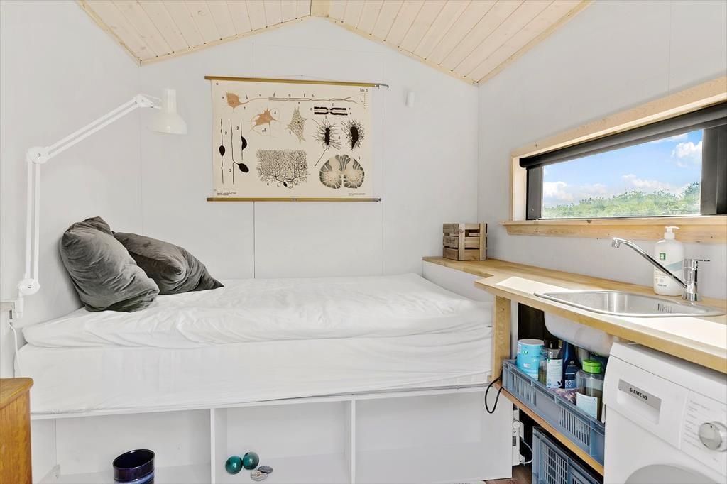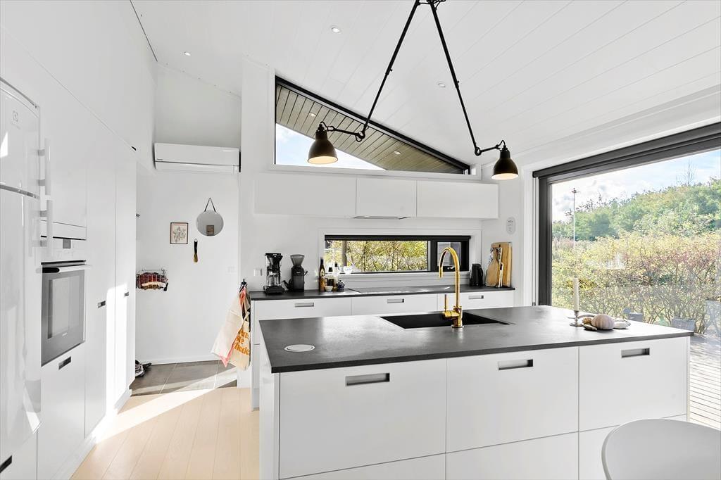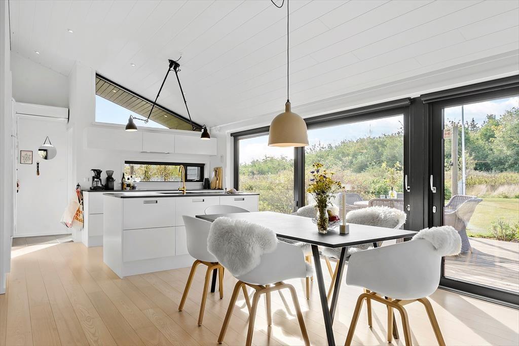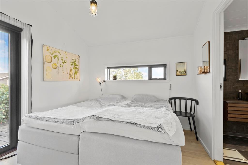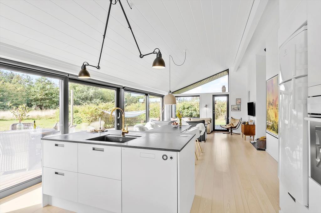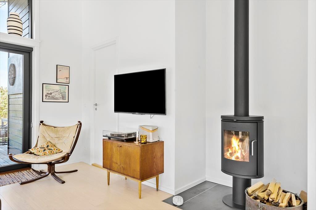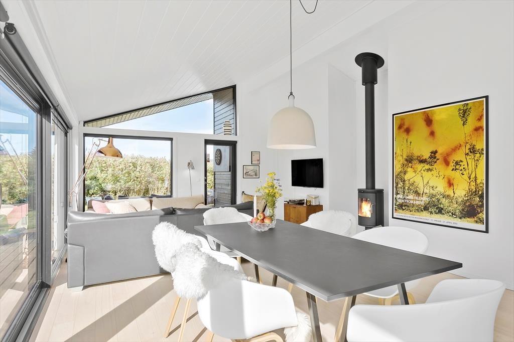 I sommerhuset har man fundet en perfekt balance, så rummene emmer af både stil og charme. Moderne design blander sig med retrofund og nips i varme farvetoner, og sammen med et dejligt lysindfald går det hele op i en højere enhed. Med andre ord kan I føle jer supergodt tilpas, når I hygger jer her med madlavning i det åbne køkken, kortspil omkring spisebordet eller en rolig stund i sofaerne nær brændeovnen. Husets to badeværelser og tre soveværelser er holdt i samme tjekkede stil, og også annekset, der er udstyret med vaskemaskine og en ekstra soveplads, er pænt og velindrettet.