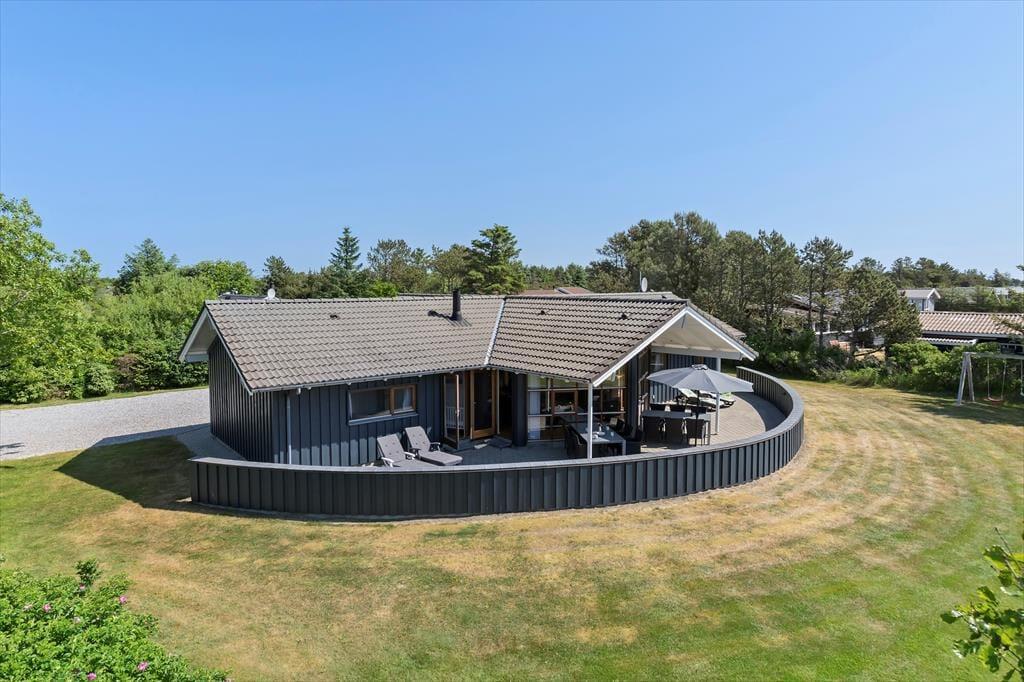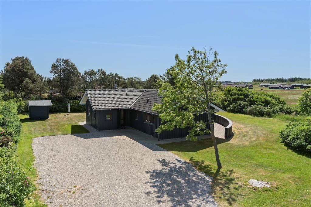 Rundt om sommerhuset er der flere dejlige terrasser at vælge imellem, så I kan sætte jer lige der, hvor der er mest sol og læ. Syd terrassen kan sikkert hurtigt blive favoritten, for den er ekstra stor og delvist overdækket, og så ligger den med udsigt over det grønne areal, der grænser op til grunden. Har I medbragt bolde, frisbee’er eller vikingespil, kan I boltre jer på græsplænen, og grundens grus areal er så stort, at der nemt kan holde flere biler.