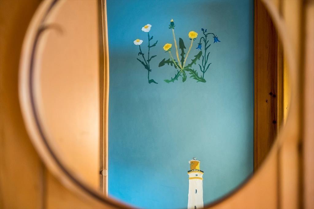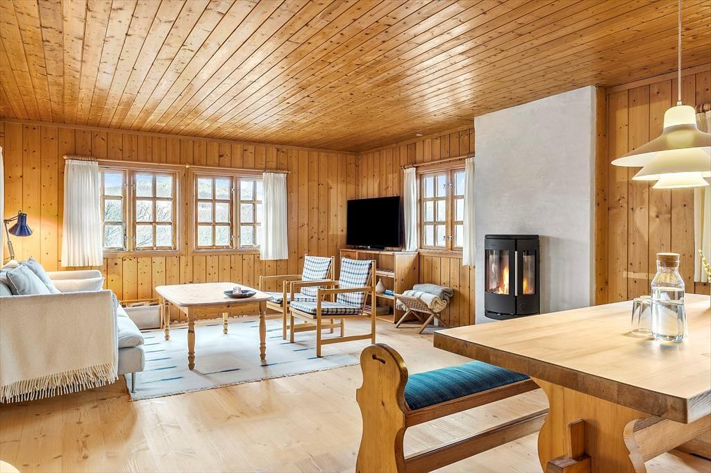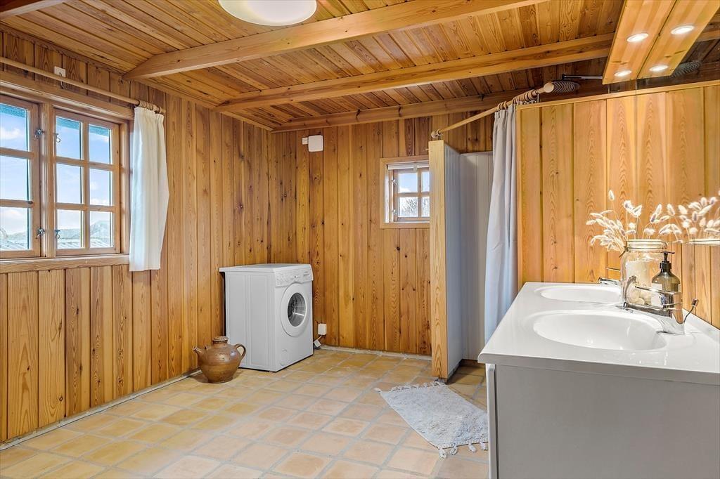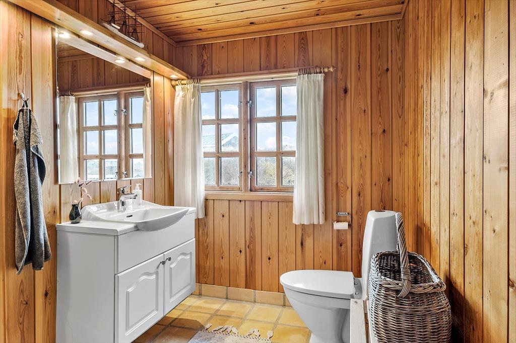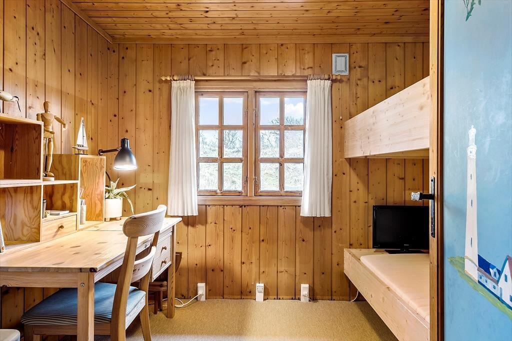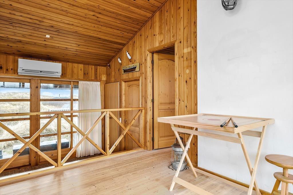 Sommerhuset har ligget her i første klitrække lige siden 1971, og selvom det er blevet løbende vedligeholdt og renoveret, har det heldigvis fået lov til at beholde sin klassiske charme. De rustikke trælister på vægge og loft bidrager til den varme og rare atmosfære i rummene, der tilsammen breder sig over 120 m2. Stuen er et skønt opholdsrum med brændeovn, fladskærms-tv og åben forbindelse til køkkenet. Fine, påmalede dekorationer pryder nogle af de profilerede døre, der leder ind til husets tre soveværelser og to badeværelser. Det ene soveværelse er indrettet med køjeseng, der egner sig bedst til børn, og alternativt er der mulighed for at overnatte på hemsen. Det største soveværelse har til gengæld egen pejs, og så ligger det lige ud til et ekstra opholdsrum, hvor I kan spille bob eller slappe af i sofaen med en god bog.