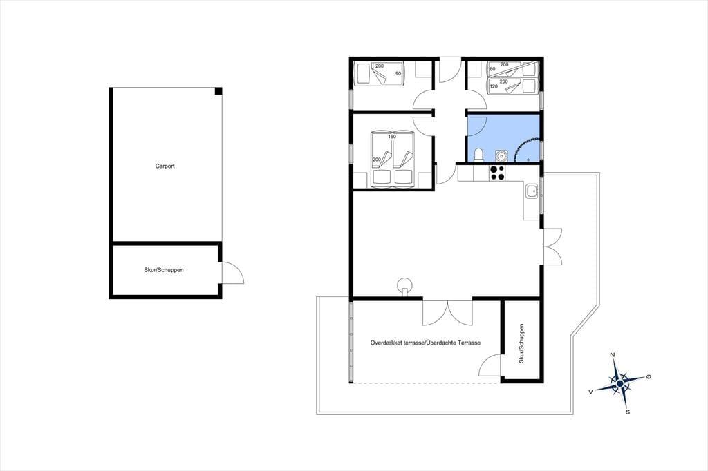 Udsigten over det fredede areal er også med til at forskønne det udendørs ferieliv. En stor og skøn terrasse er orienteret mod øst og syd, så der er gode chancer for at finde en opholdsplads i solen – eller under overdækningen, hvor I desuden er godt afskærmede for vinden. Der er havemøbler og liggestole til rådighed, og hvis I vil grille, er der rig mulighed for at kokkerere ude i det fri.