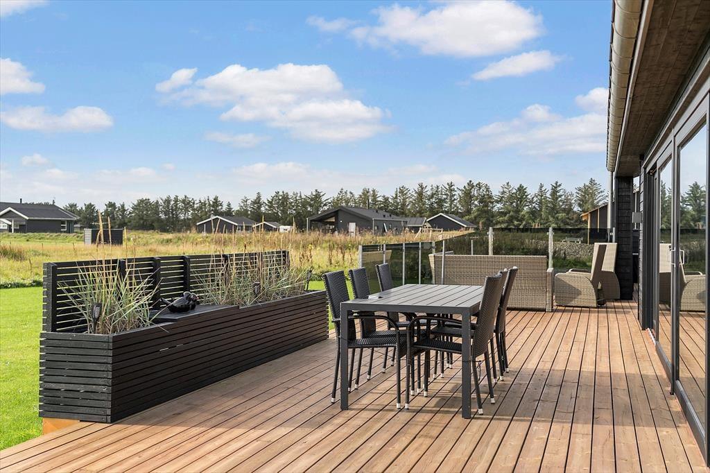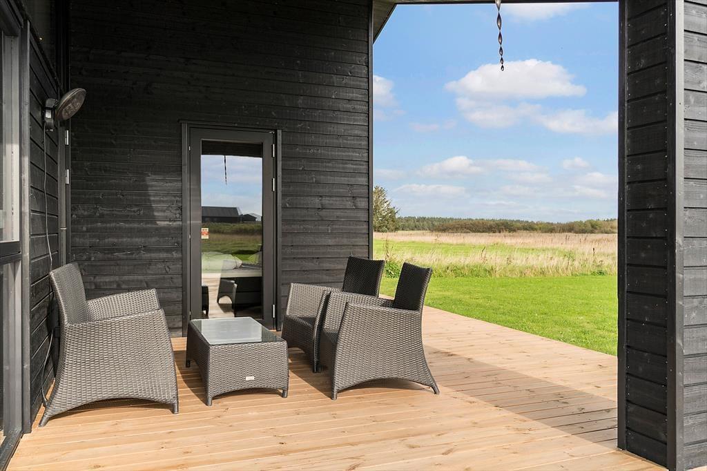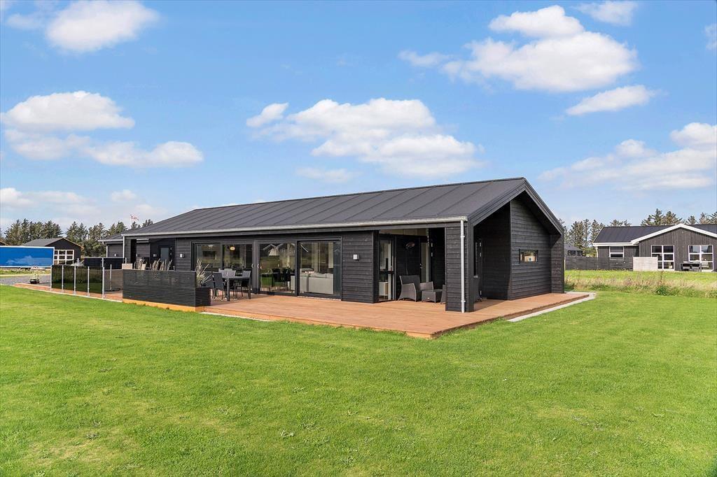 På den lukkede Kringelbækvej i Grønhøj står dette store og velindrettede sommerhus fra 2020 klar til at byde jer velkommen til en rigtig rar ferie i rolige omgivelser.