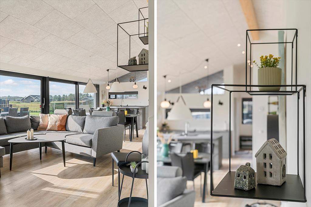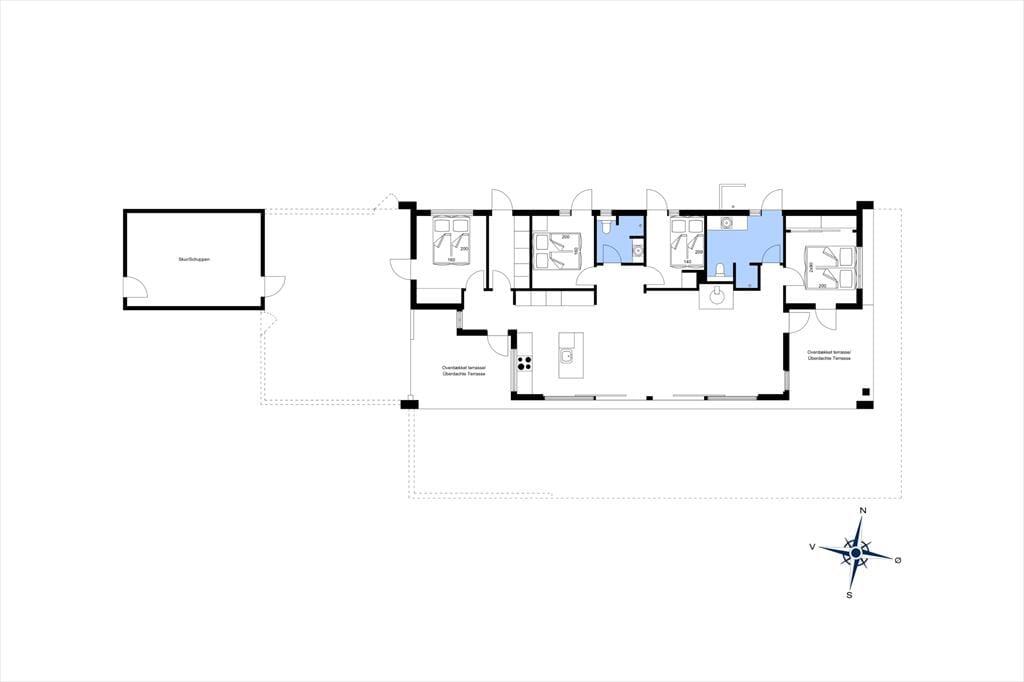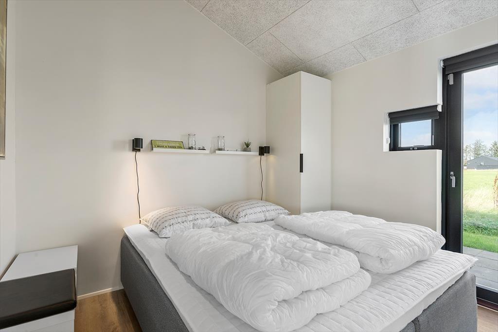 Med et sommerhus på 112 m2 har I god plads til indendørs feriehygge med leg, afslapning og langstrakte læsestunder. Når I vil nyde hinandens selskab, kan I sætte jer i stuen, der er et smukt opholdsrum med biopejs, fladskærms-tv og komfortabelt møblement. I det åbne køkken har I alt det nødvendige for at lave lækker morgenmad og kræse om dagens øvrige måltider, og morgenbrusebadet kan foregå på et af de to pæne badeværelser. Soveværelser er der fire af, og de er alle udstyret med garderobeskabe.