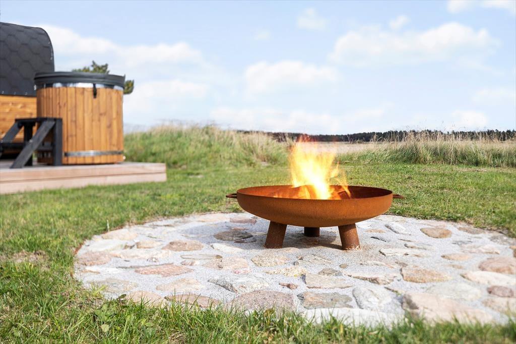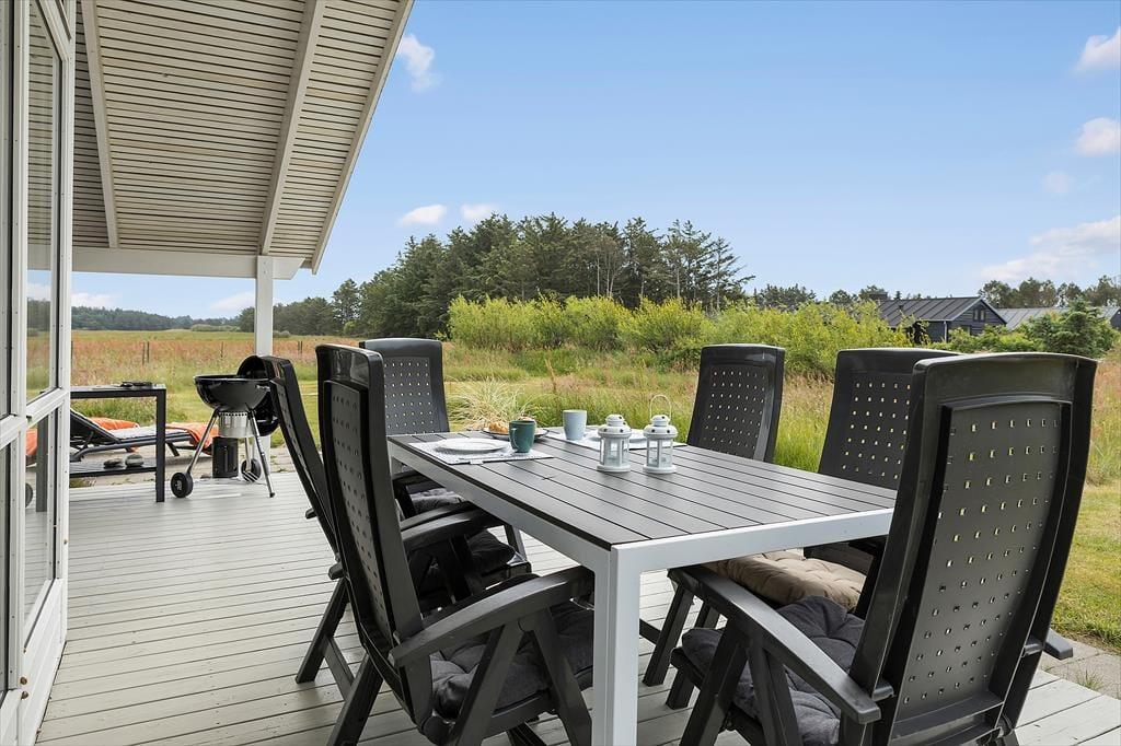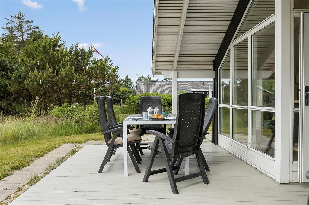 Udendørs er der masser af muligheder for at slappe af og nyde den friske luft. Den overdækkede terrasse inviterer til hyggelige stunder, uanset vejret, og de mange små hyggekroge rundt om huset gør det let at finde en privat plads til at nyde en god bog eller en kop kaffe. På den store grund kan du lade børnene lege frit, mens du selv nyder udsigten til det fredede område. Aftenerne kan tilbringes med grillmad på terrassen, mens du lytter til havets brusen i baggrunden.